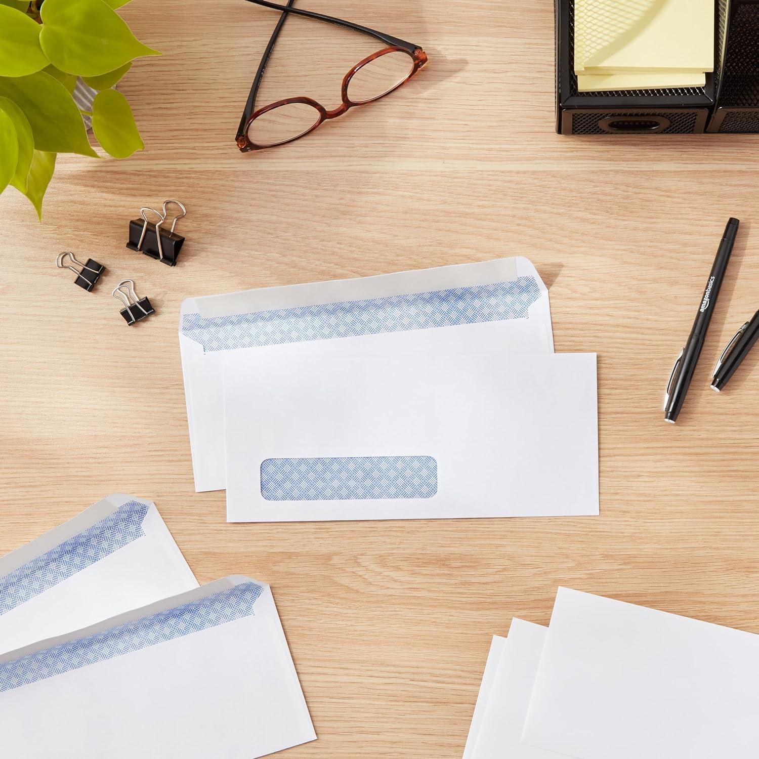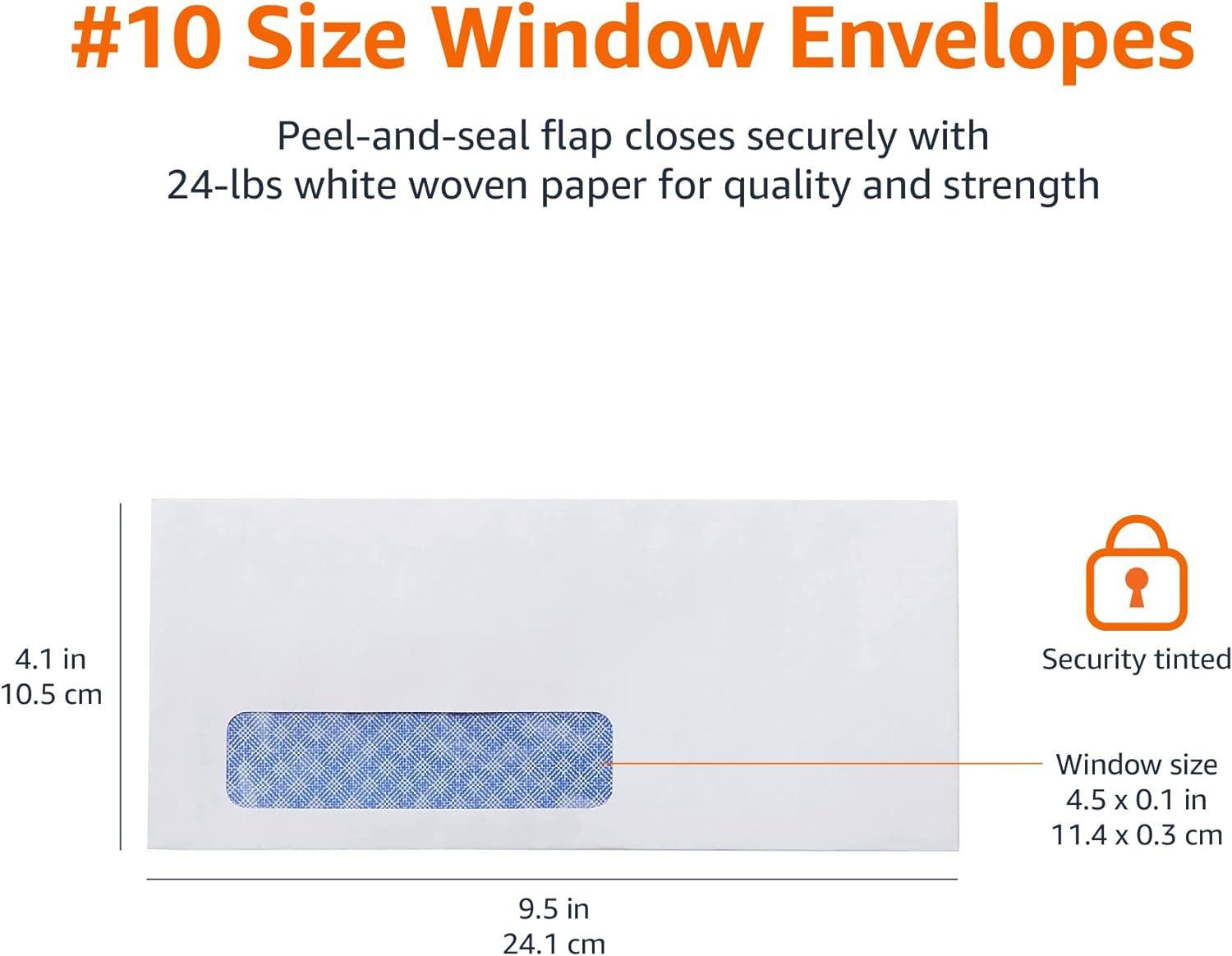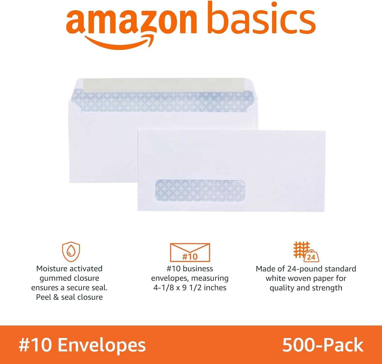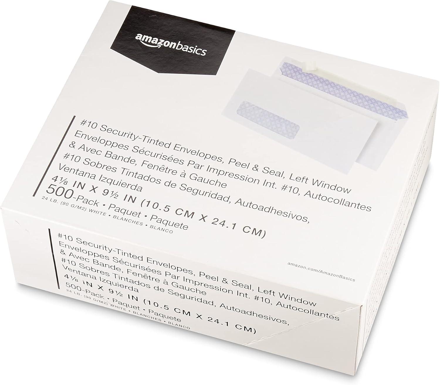 Amazon Basics #10 Business Letter Envelopes with Gummed Seal,No Tint,500 Count (Pack of 5)(Peel & Seal (Tinted Left window))