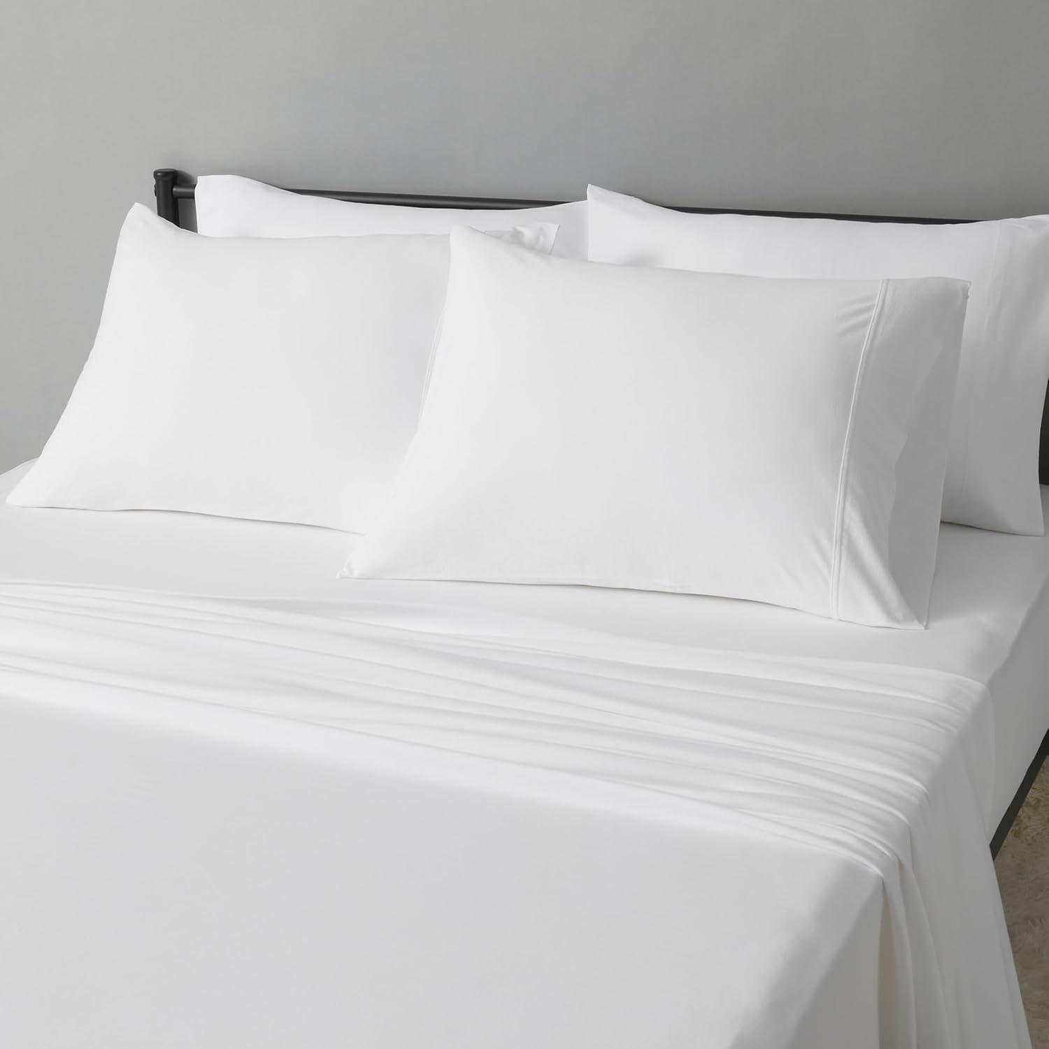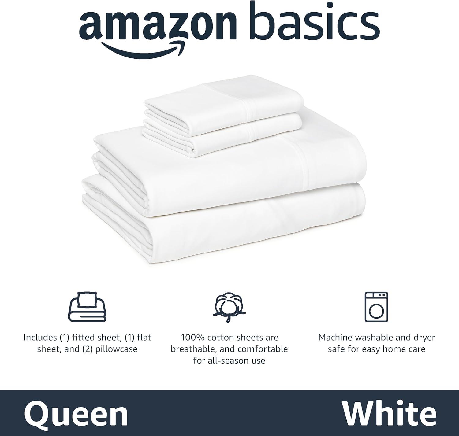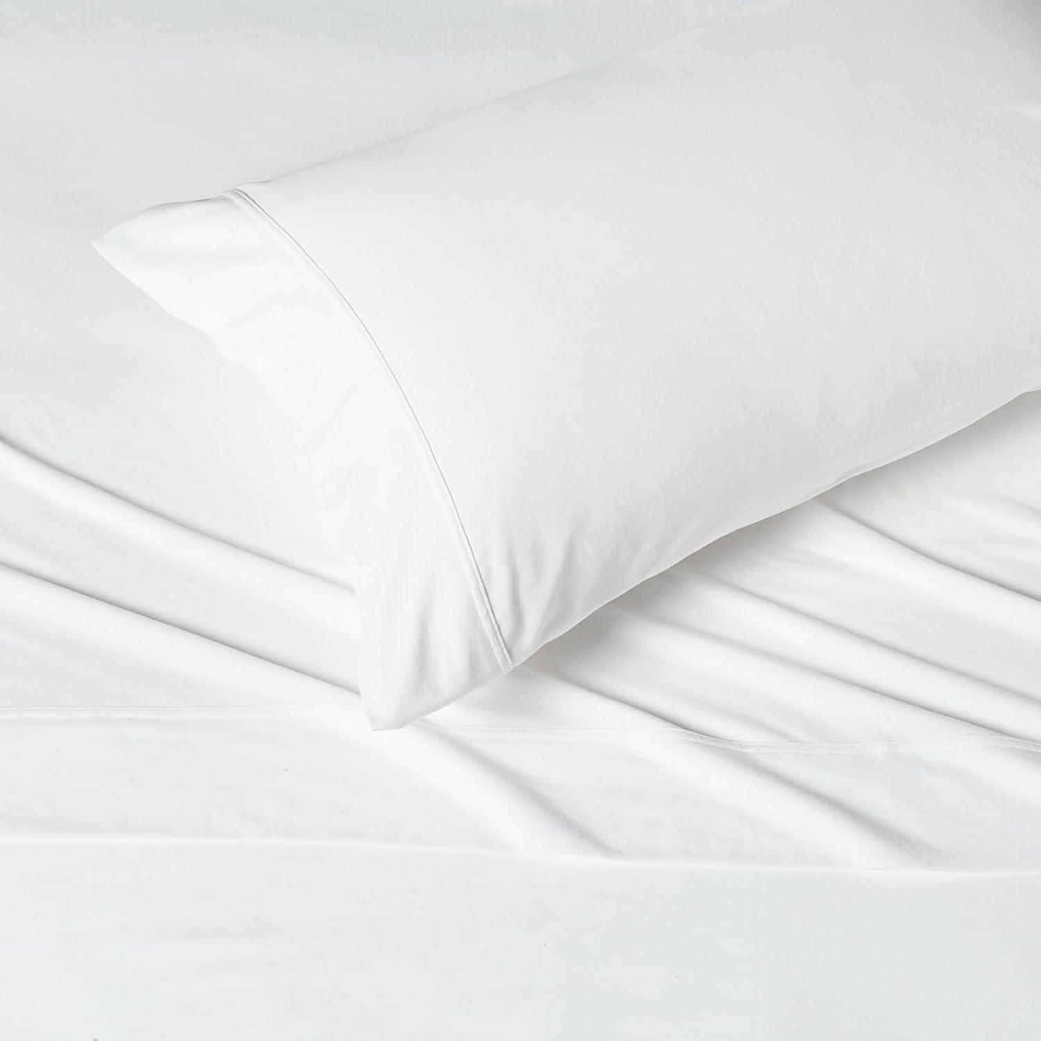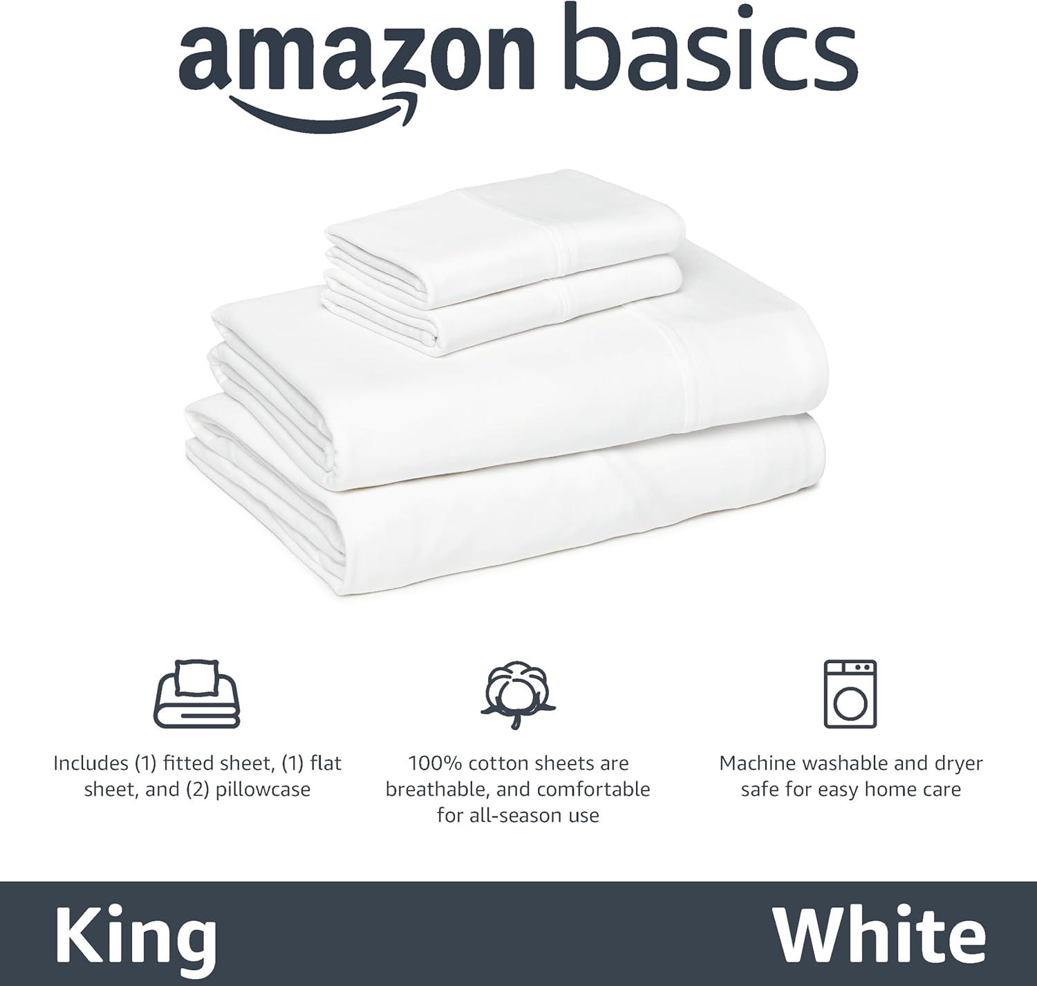 Amazon Basics 100% Cotton Jersey Bed Sheet Set, King, Black, Solid(Bright White)