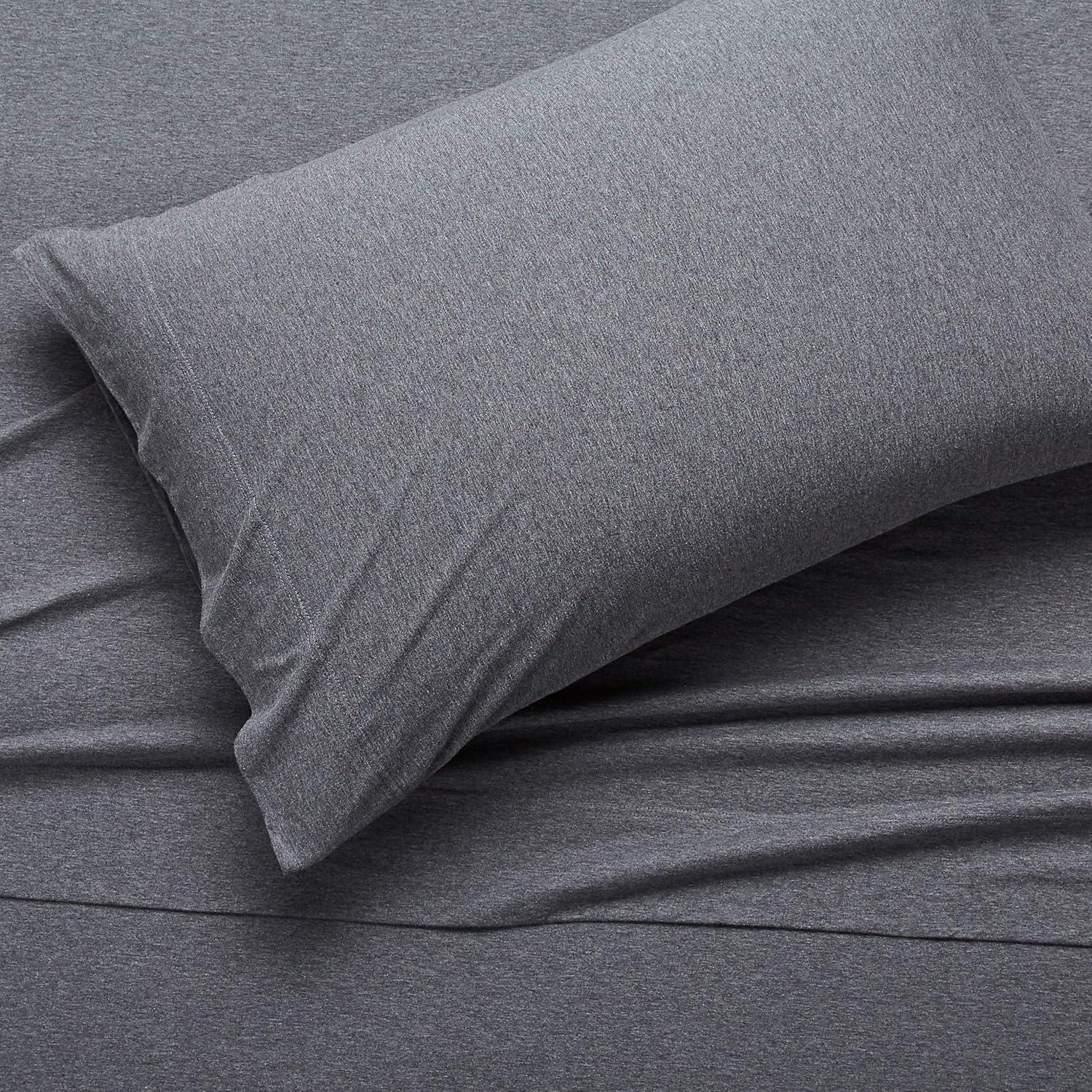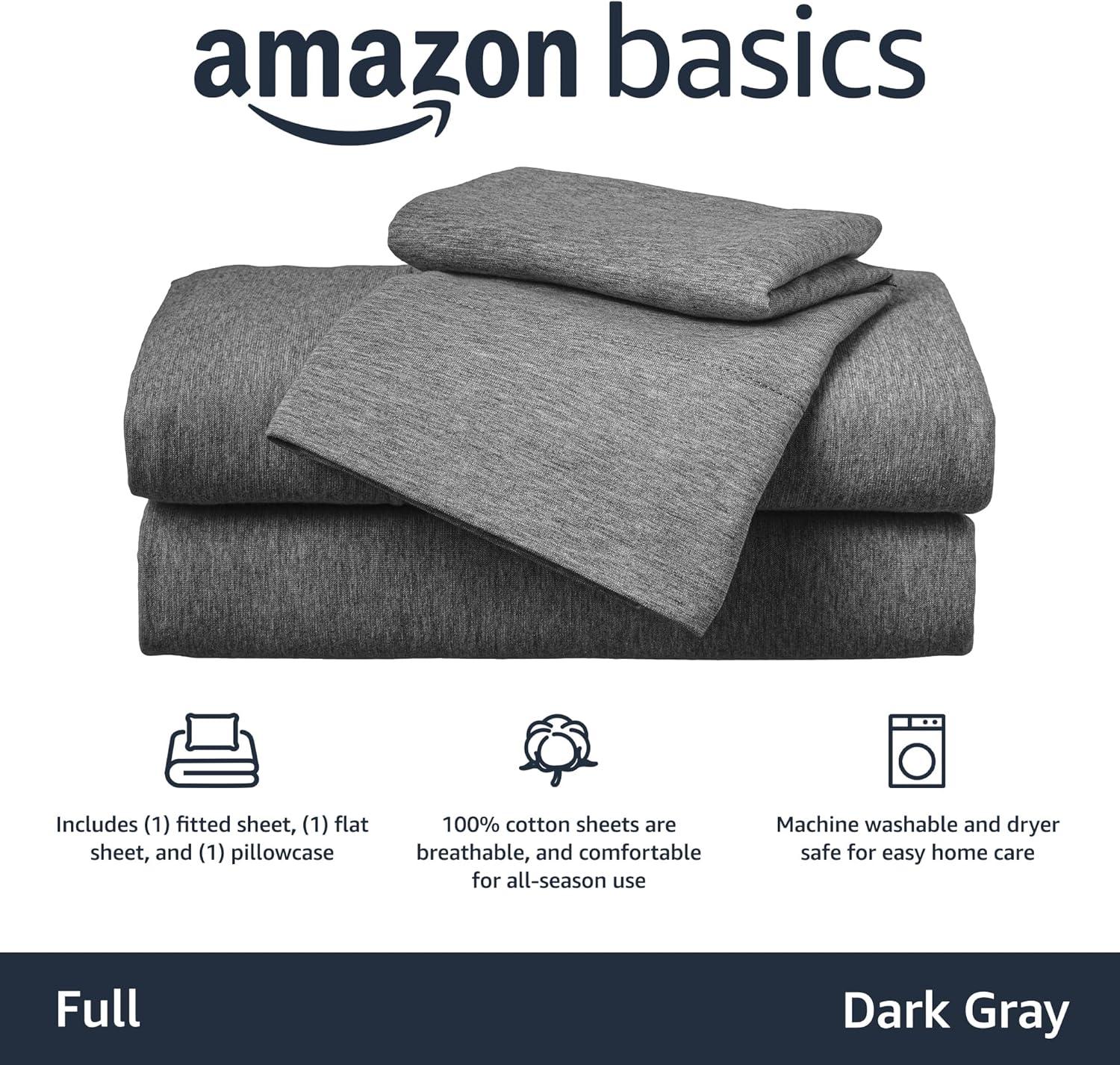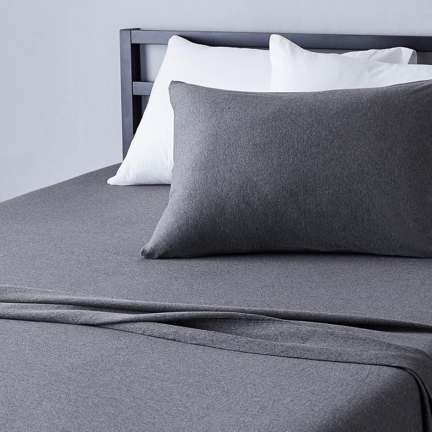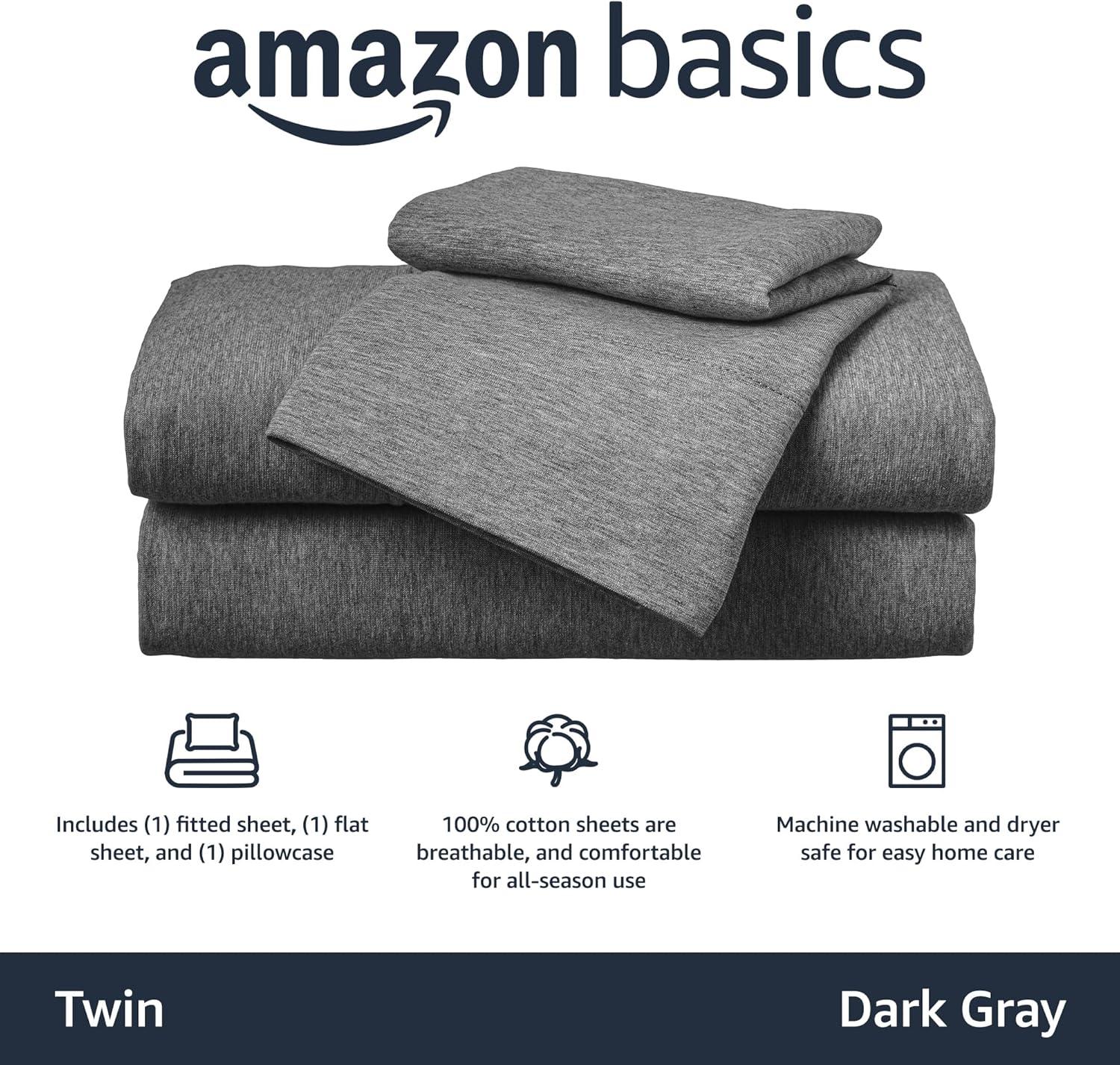Amazon Basics 100% Cotton Jersey Bed Sheet Set, King, Black, Solid(Dark Gray)