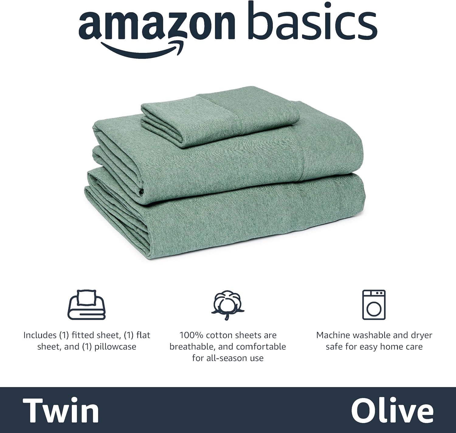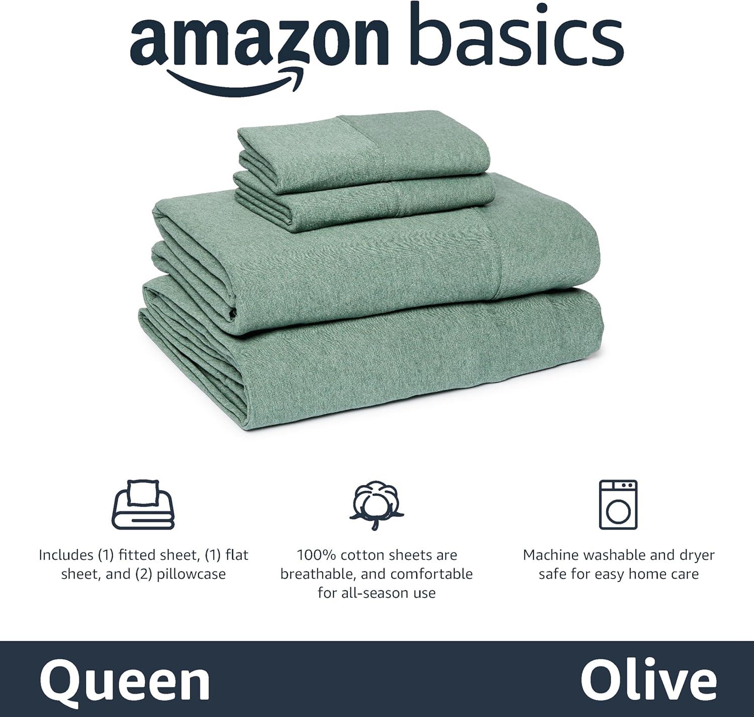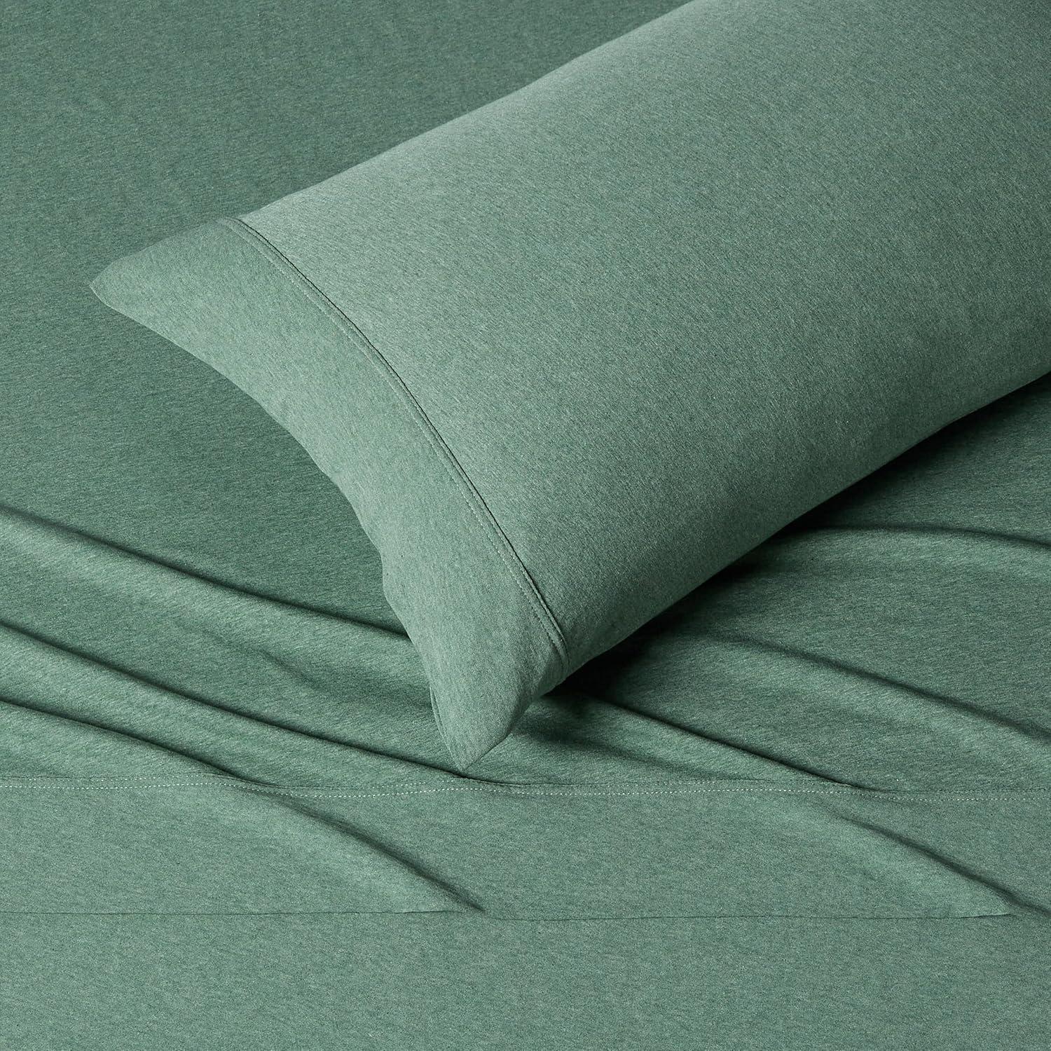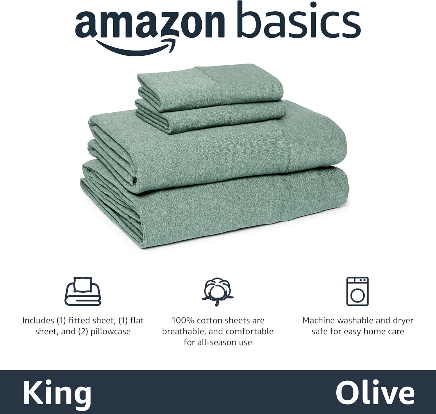 Amazon Basics 100% Cotton Jersey Bed Sheet Set, King, Black, Solid(Green)