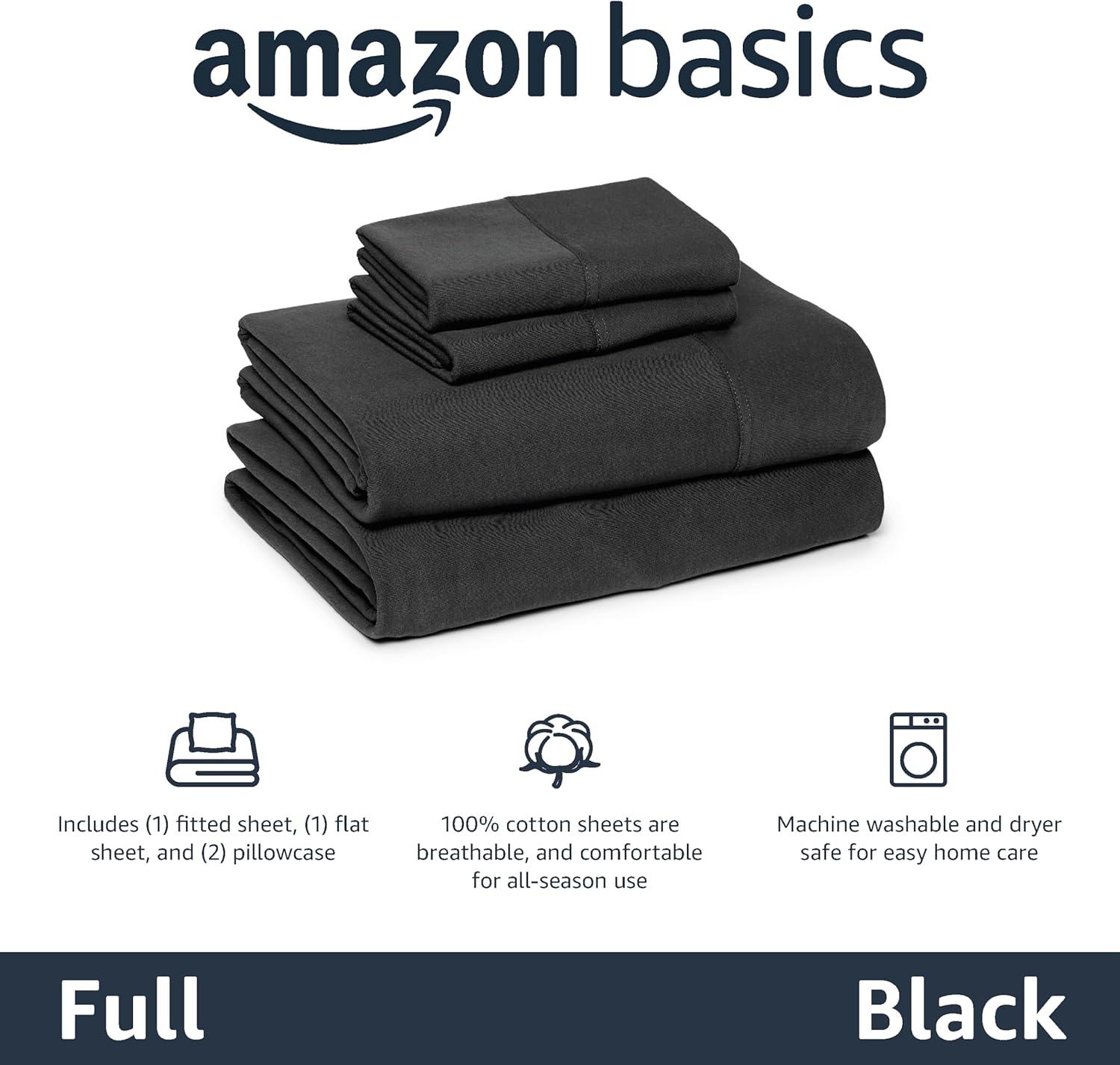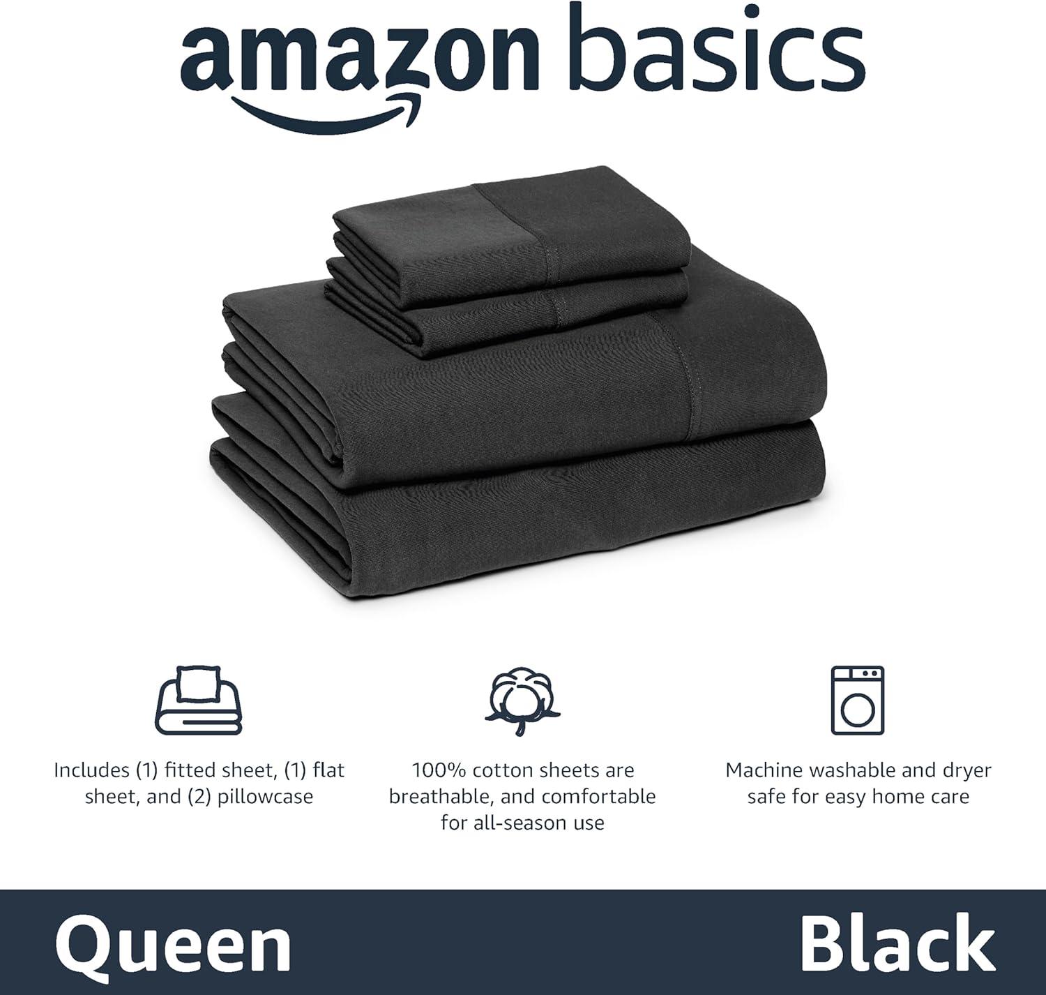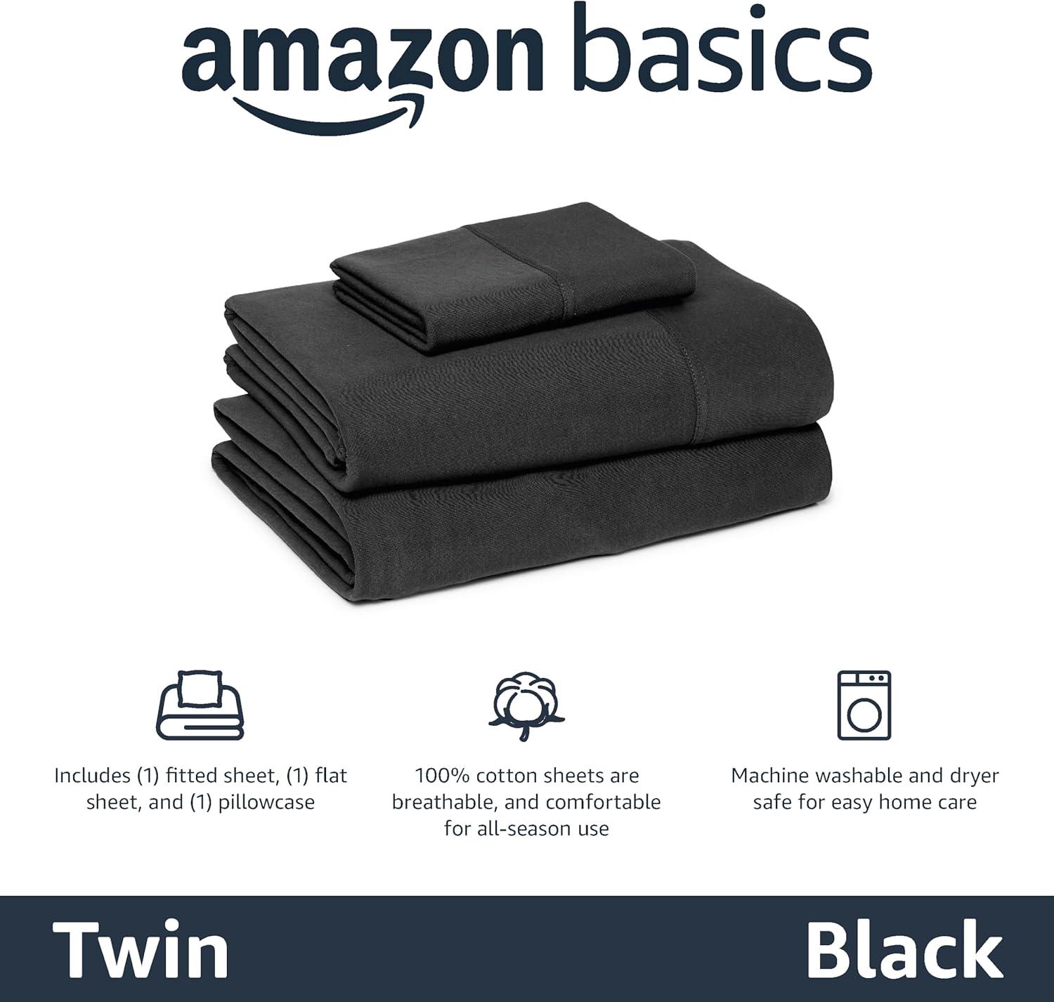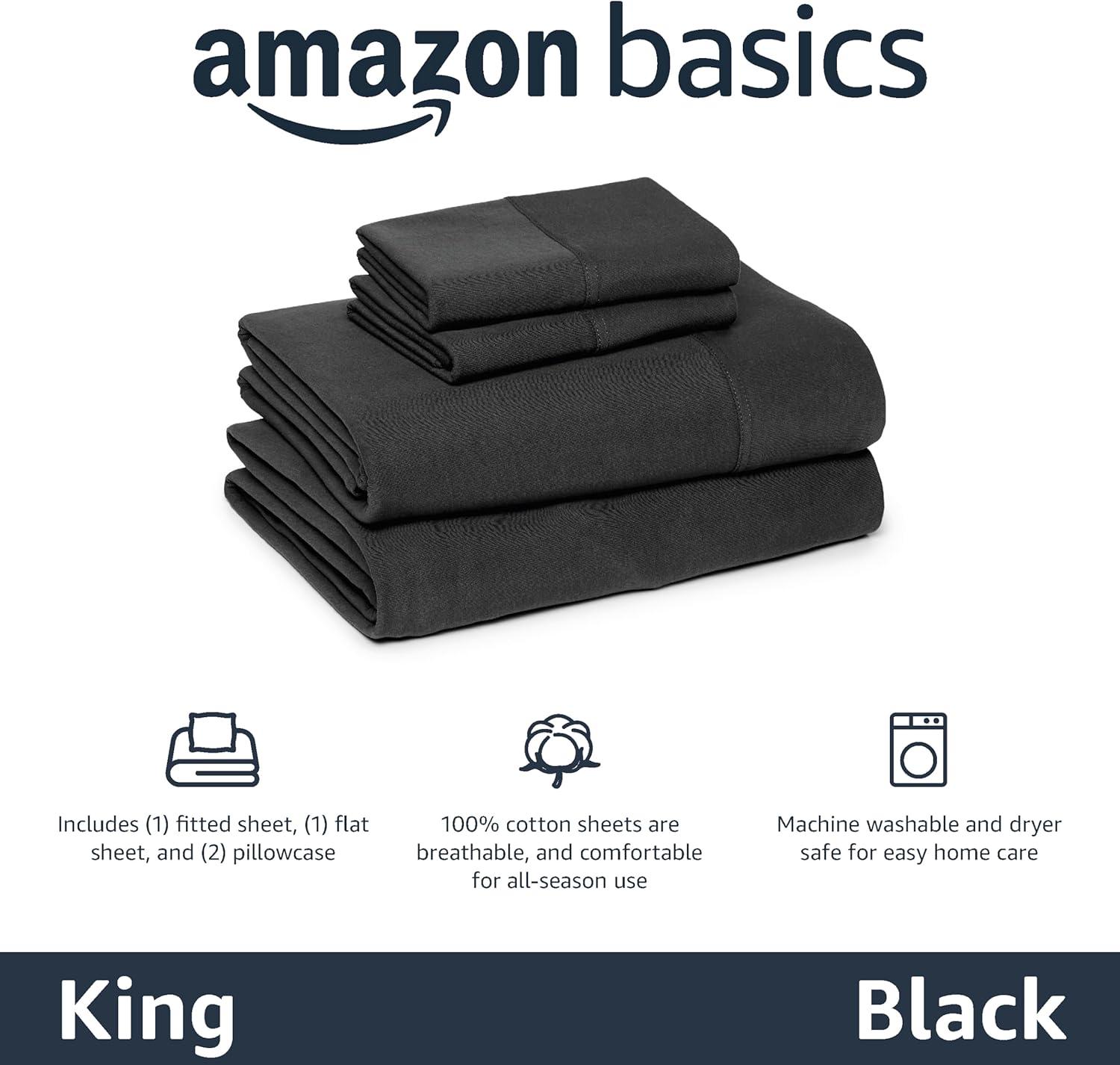 Amazon Basics 100% Cotton Jersey Bed Sheet Set, King, Black, Solid(Jet Black)