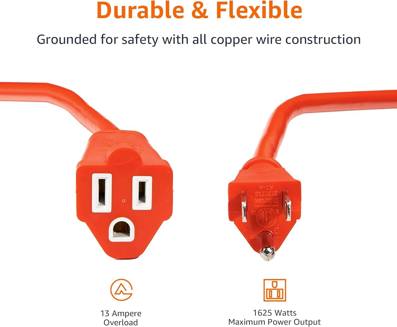 Amazon Basics 100 foot 3-Prong Vinyl Indoor/Outdoor Extension Cord – 10 Amps, 1250 Watts, 125 VAC – Orange(Orange)