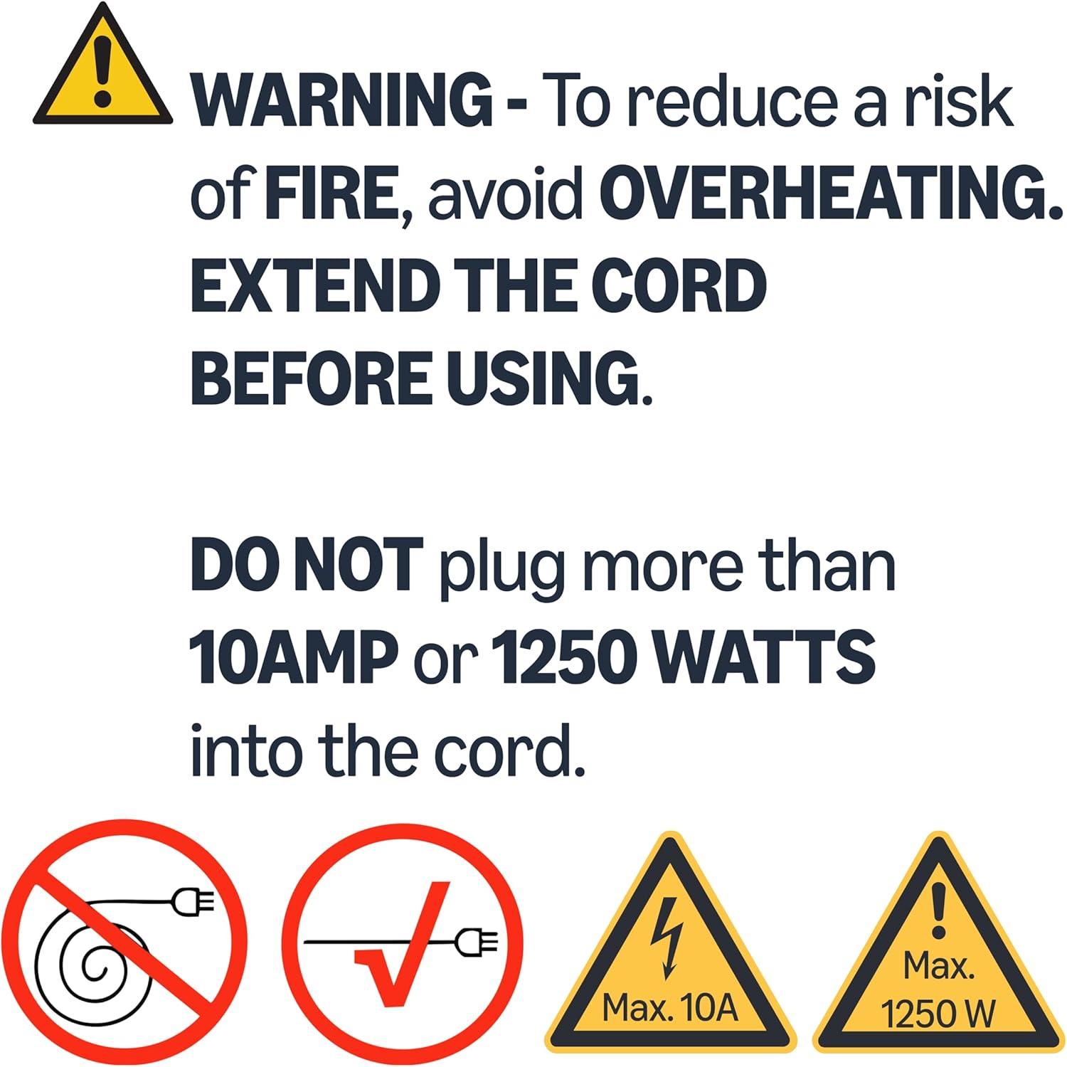 RELIABLE POWER: , ETL certified 100-foot indoor/outdoor extension cord rated 10 Amps, 1250 Watts and 125 VAC.