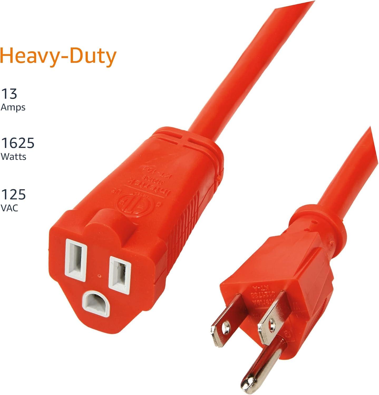 Amazon Basics 100-Foot 3-Prong Heavy-Duty Vinyl Indoor/Outdoor Extension Cord – 10 Amps, 1250 Watts, 125 VAC – Orange