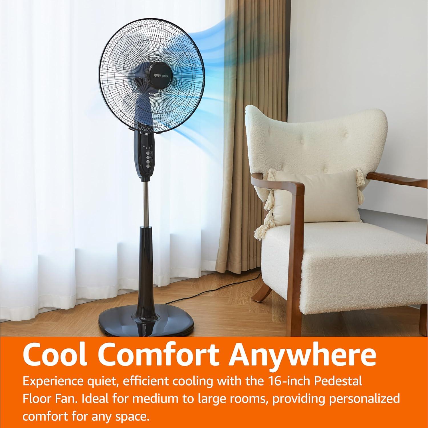 OPTIMIZED DESIGN FOR MEDIUM TO LARGE ROOMS: This 16-inch pedestal fan with remote effectively circulates air in spaces like living rooms, kitchens, and offices