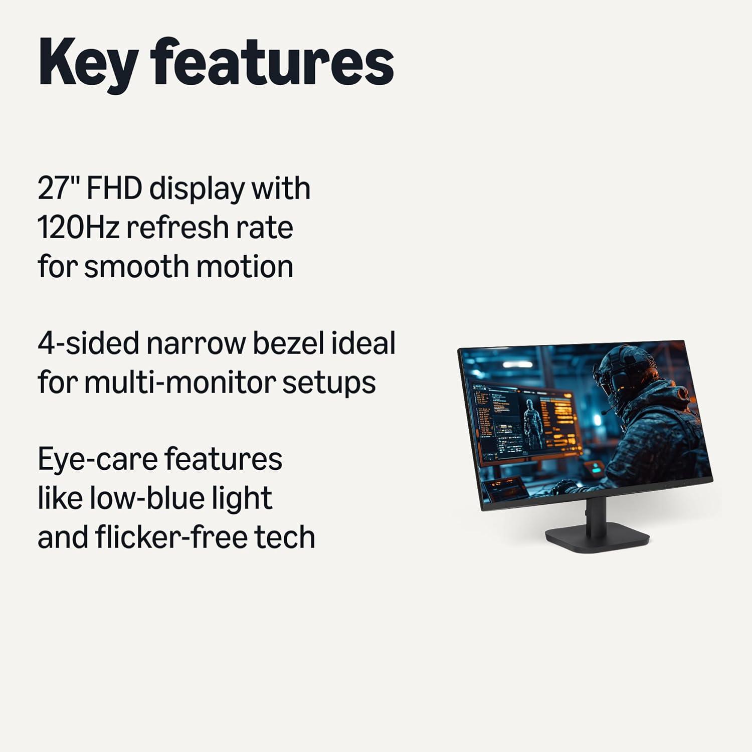 Amazon Basics 23.8-inch Computer Monitor 120 Hz, 1080P, HDMI, DP, VGA, VESA Compatible for Office,Home(27in)