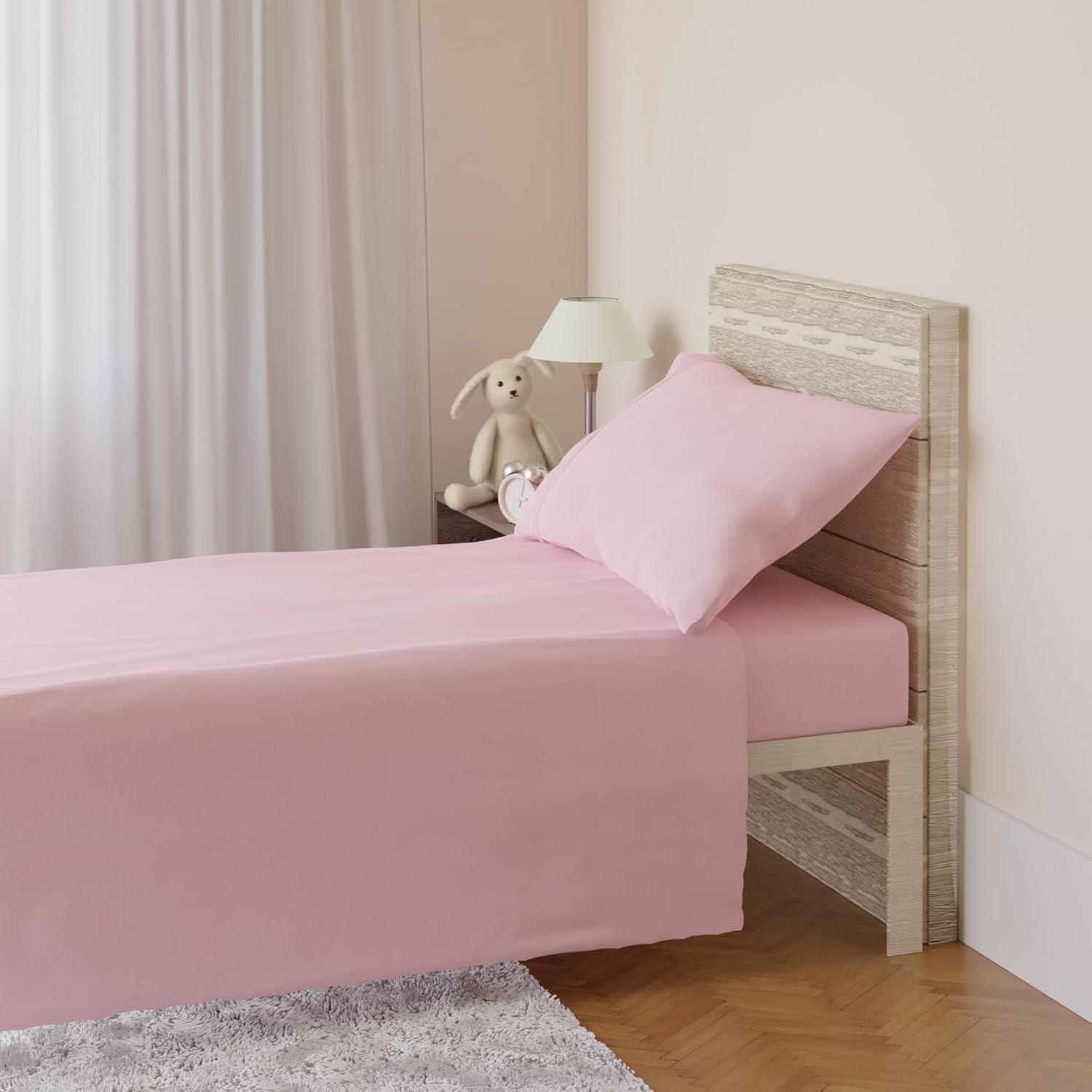 Amazon Basics 3 Piece Bed Sheet Set, 100% Cotton Jersey, Includes Super Soft, Flat and Fitted Sheets, Pillowcase, Toddler, Pink, Solid(Pink)