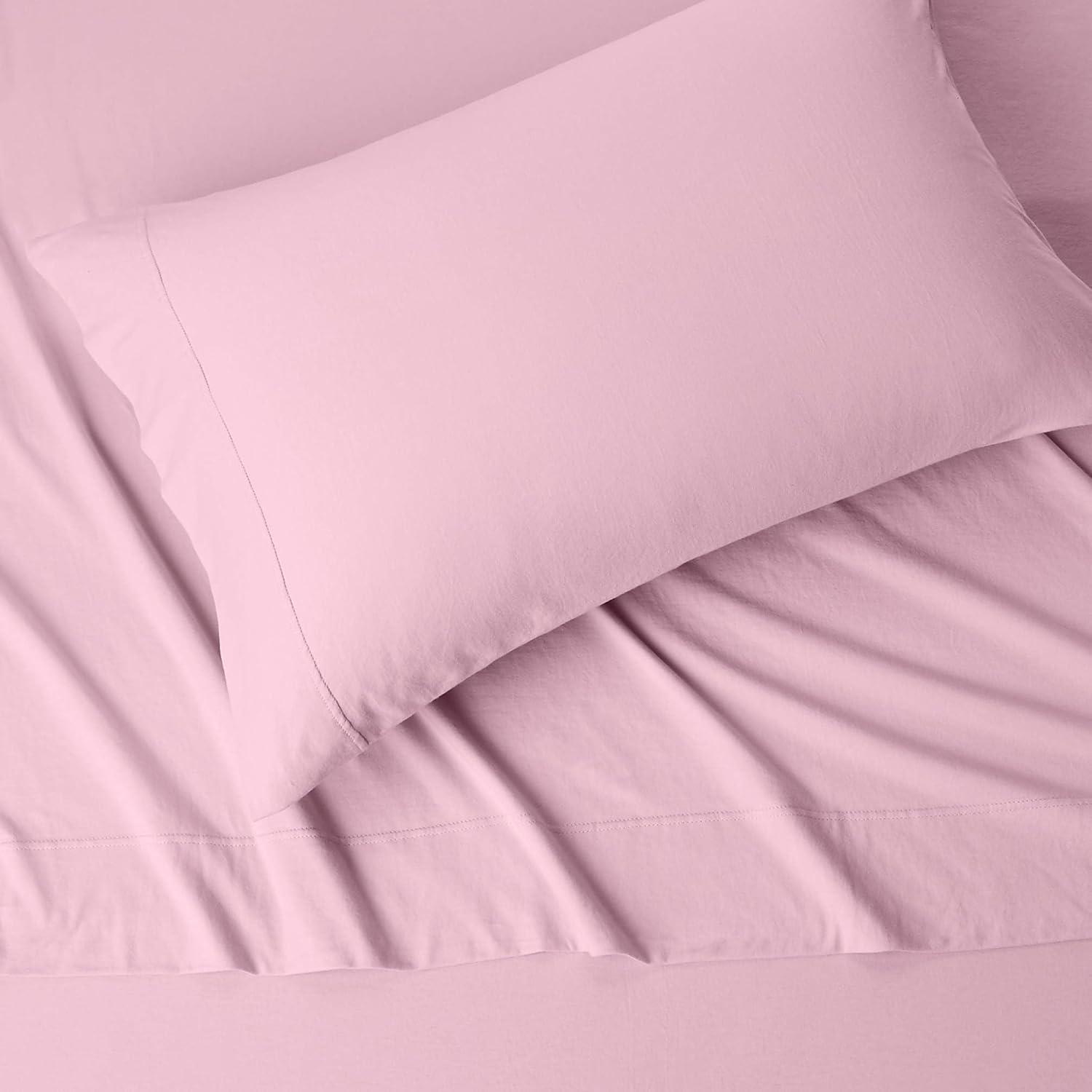 imageAmazon Basics 3 Piece Bed Sheet Set 100 Cotton Jersey Includes Super Soft Flat and Fitted Sheets Pillowcase Toddler Pink SolidOatmeal