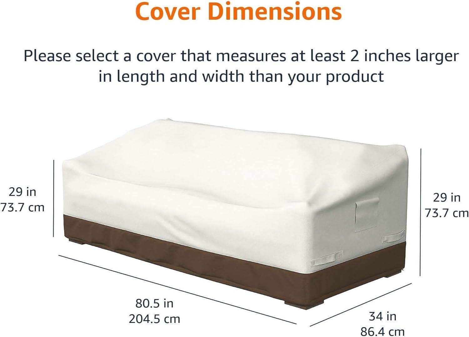 Product dimensions: approximately 34 x 80.5 x 29 inches (LxWxH);please select a cover that measures at least 2 inches larger in length and width than your sofa