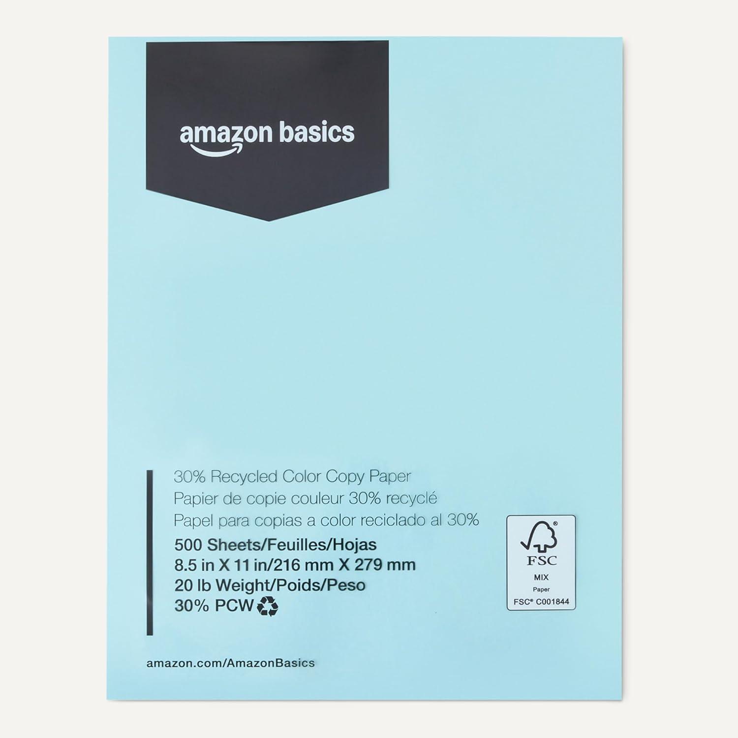 Amazon Basics 30% Recycled Color Copy Paper, 8.5" x 11", 20lb, 500 Sheets, Pastel Canary(Pastel Blue)