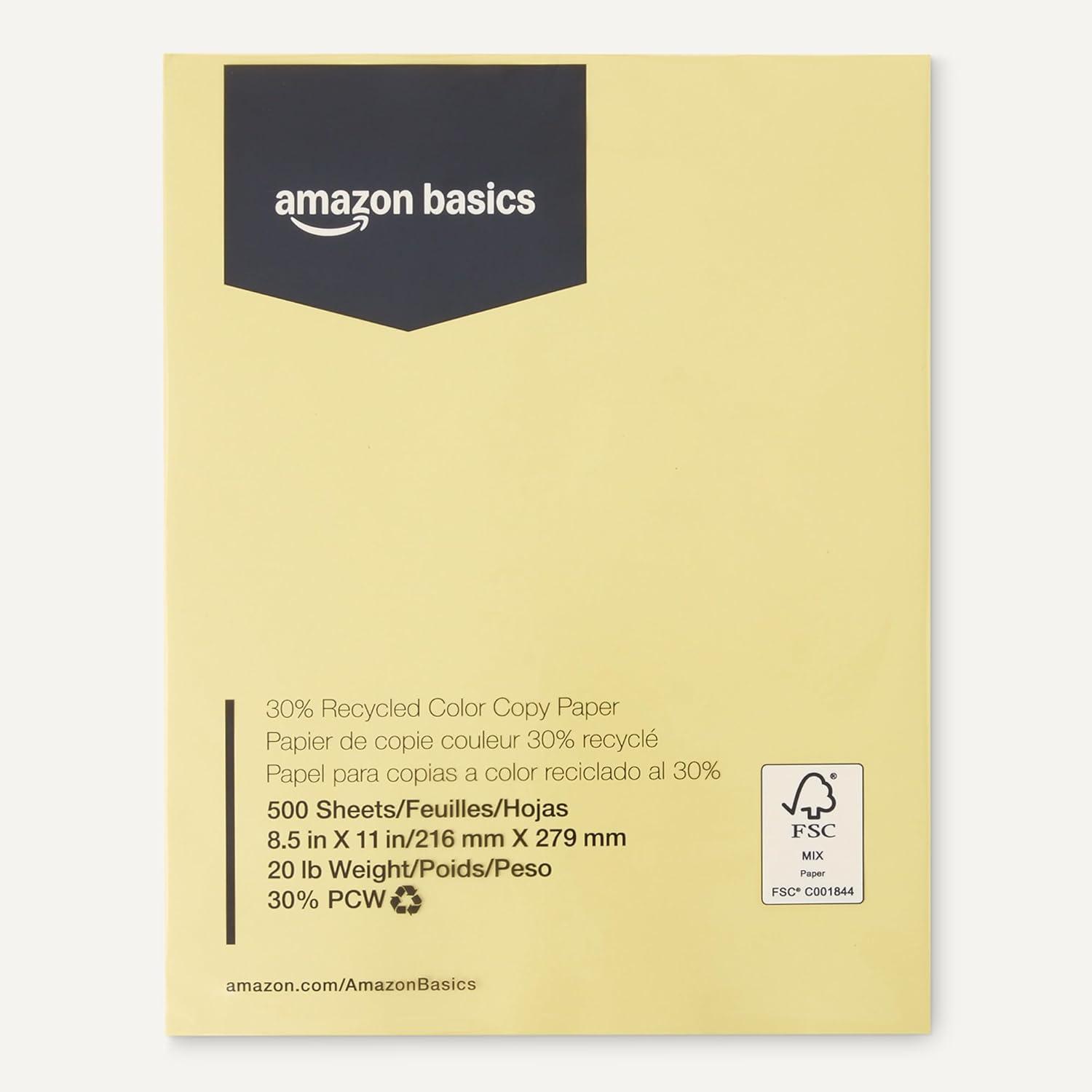 Amazon Basics 30% Recycled Color Copy Paper, 8.5″ x 11″, 20lb, 500 Sheets, Pastel Canary(Pastel Canary)