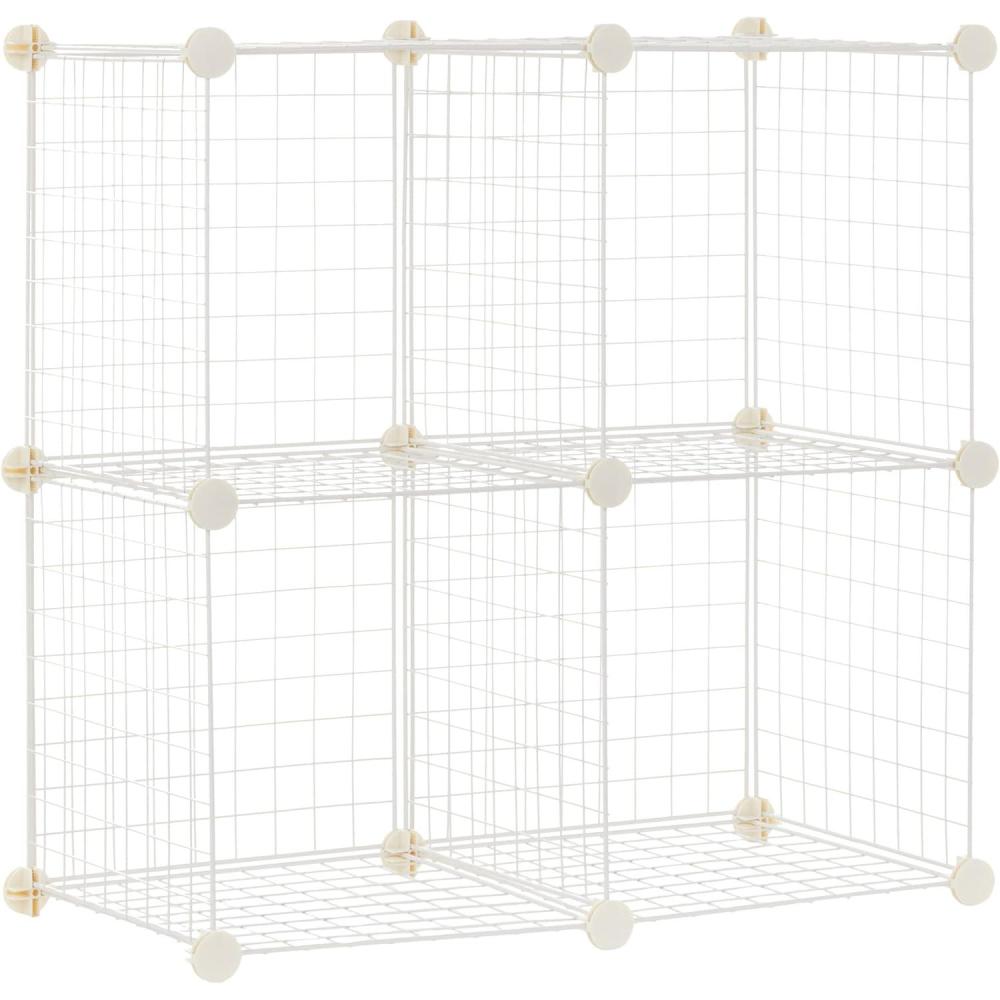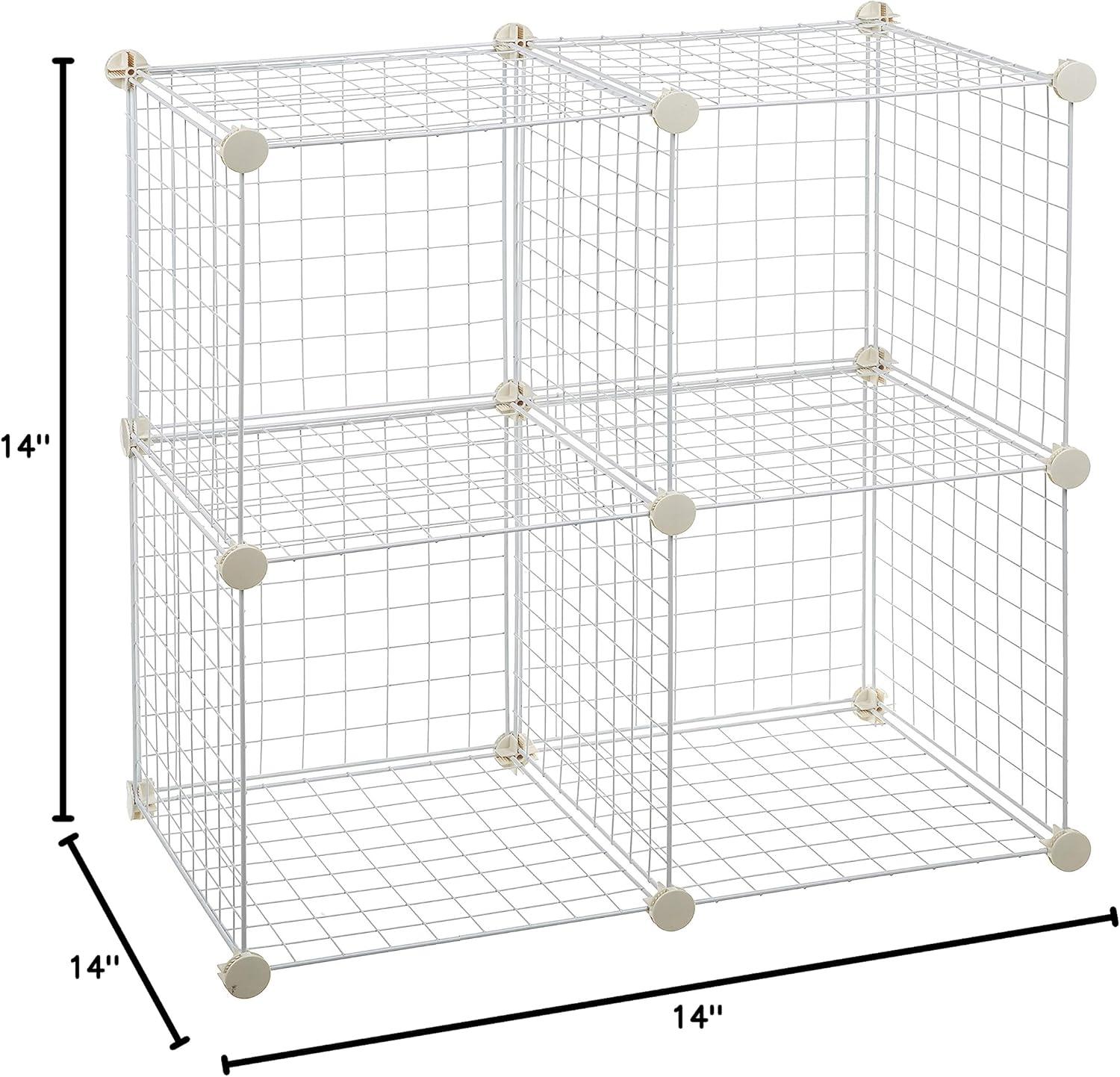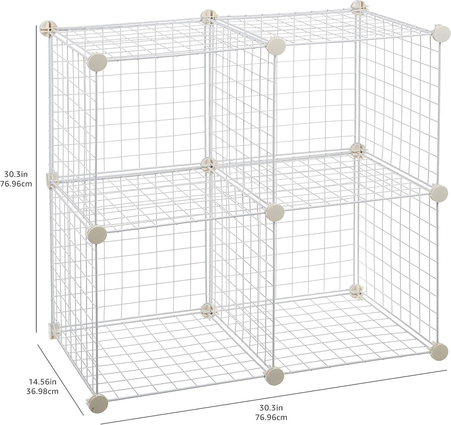 Amazon Basics 4 Cube Storage Organizer - Wire Grid Closet and Storage Shelves, Stackable, White 14"x14"x14"(White)