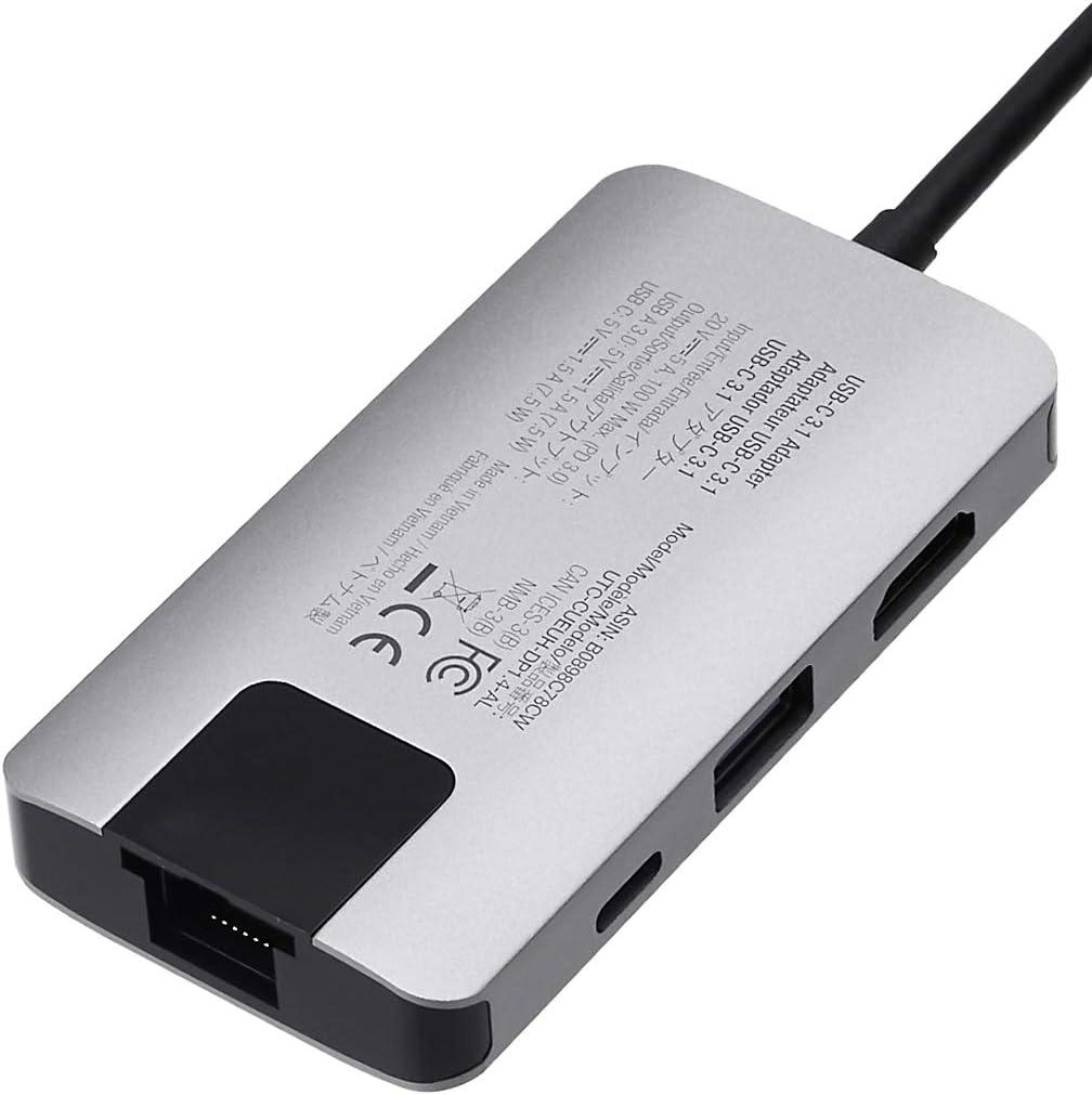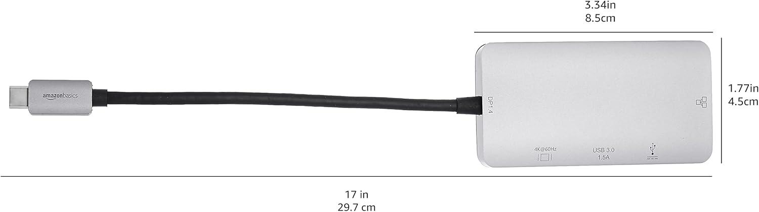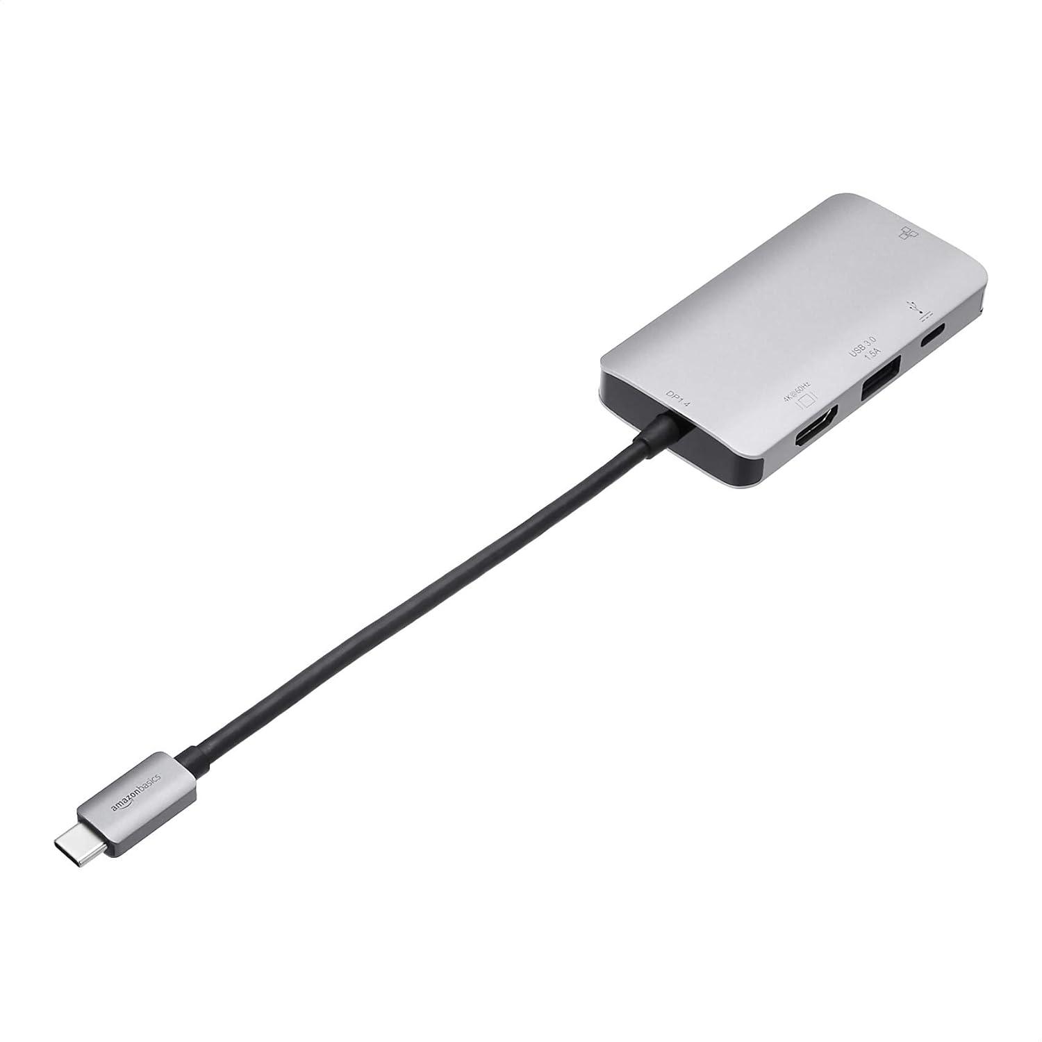 Amazon Basics 4-in-1 USB C Adapter with USB-C to HDMI, Ethernet Port, USB 3.0 and 100W Power Delivery