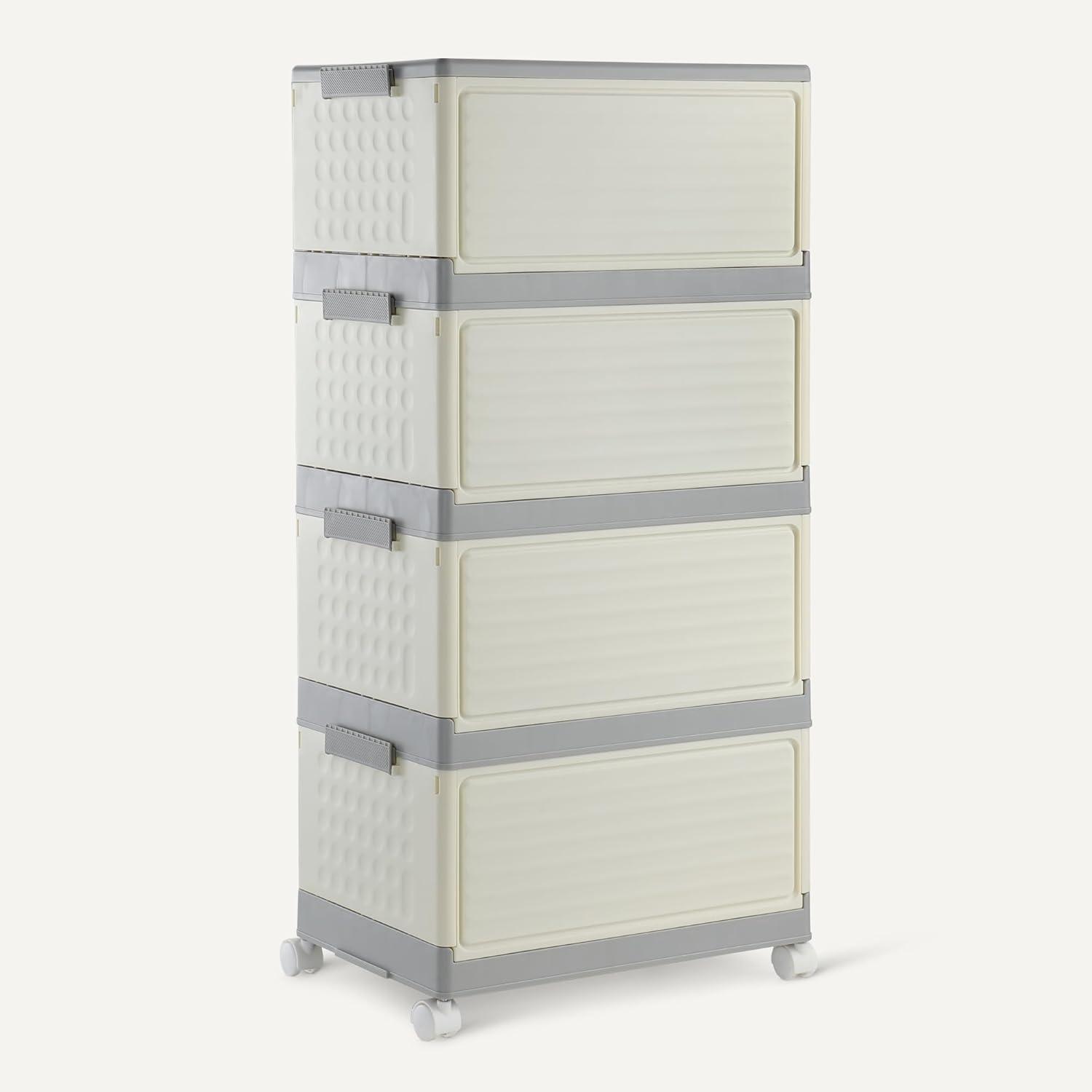SPACE-SAVING STORAGE: Stackable bins fold down when not in use for compact storage