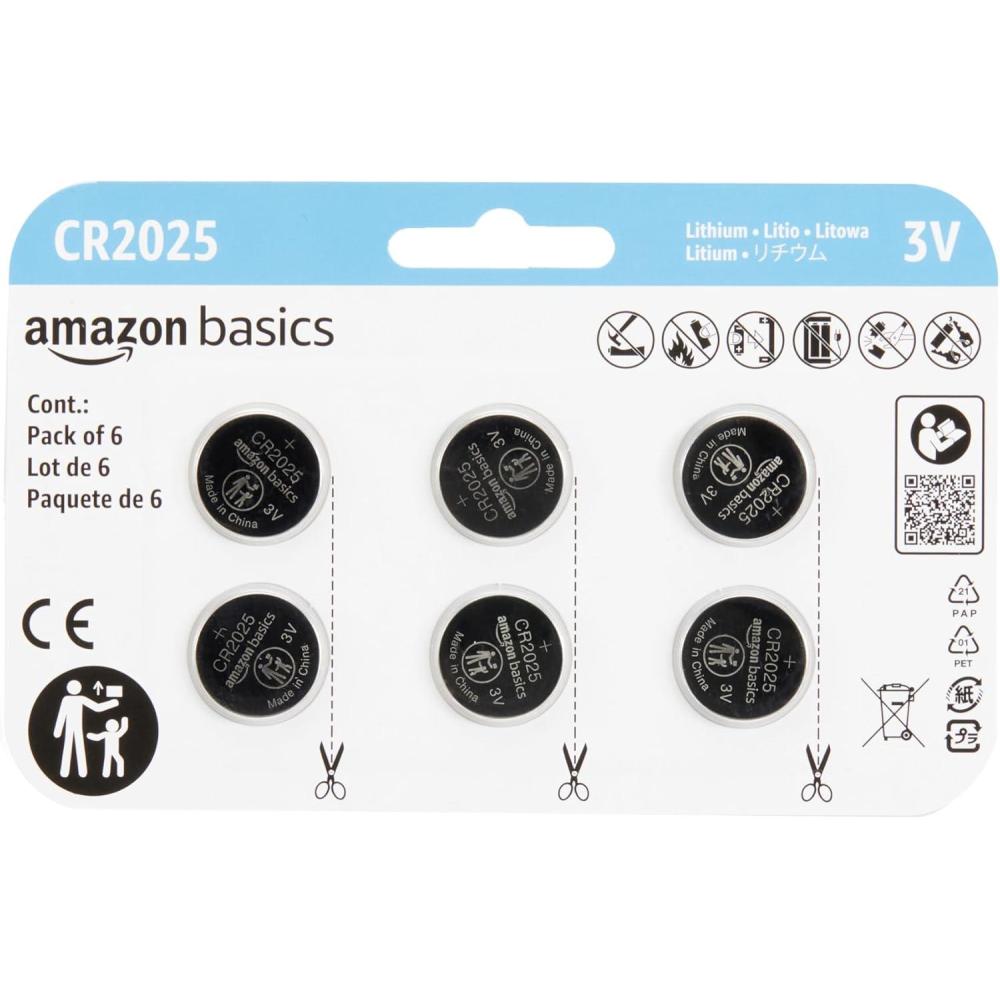Amazon Basics 6 Pack CR2025 3 Volt Lithium Coin Cell Battery, Long Lasting Power in Child Resistant Packaging