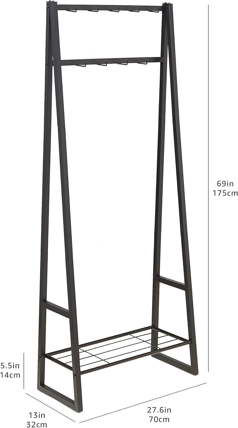 All-in-one construction with a coat rack and shoe storage shelf; includes 9 hooks for bags and scarves and 1 shelf for shoes