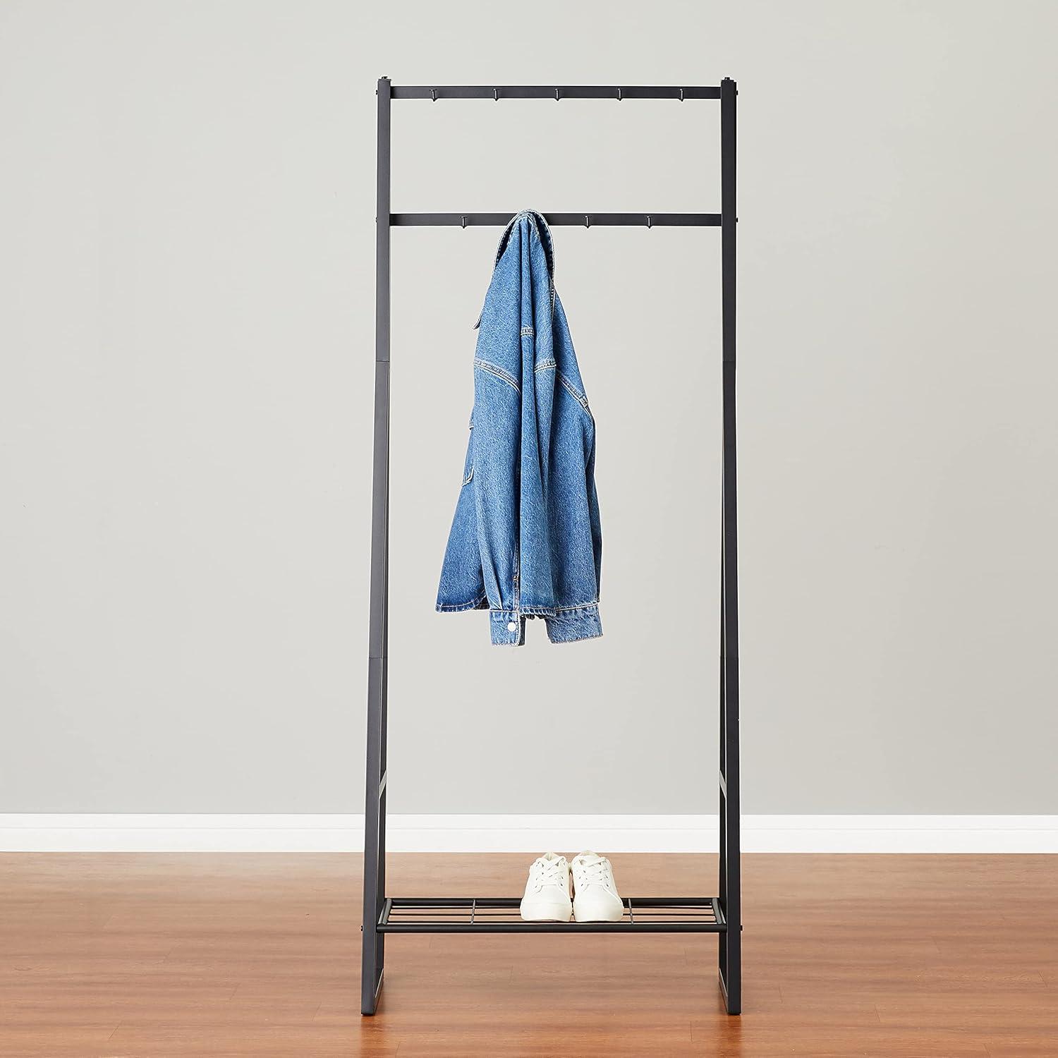 Amazon Basics 9 Hooks Coat Rack, Hallstand Entryway Shoe Bench with Metal 1-Tier Shelf
