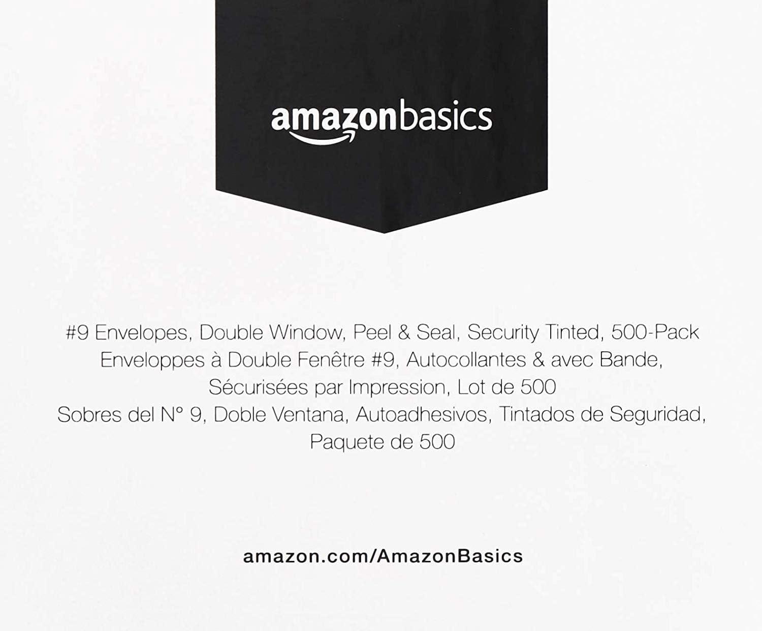 Amazon Basics #9 Envelopes with Peel & Seal, Double Window, Security Tinted, 500-Pack