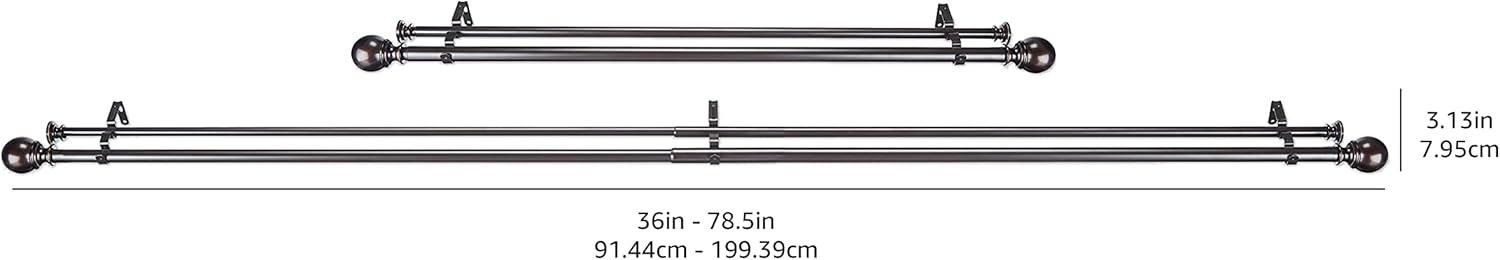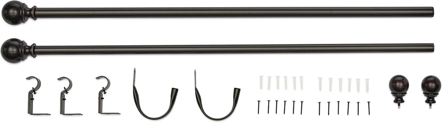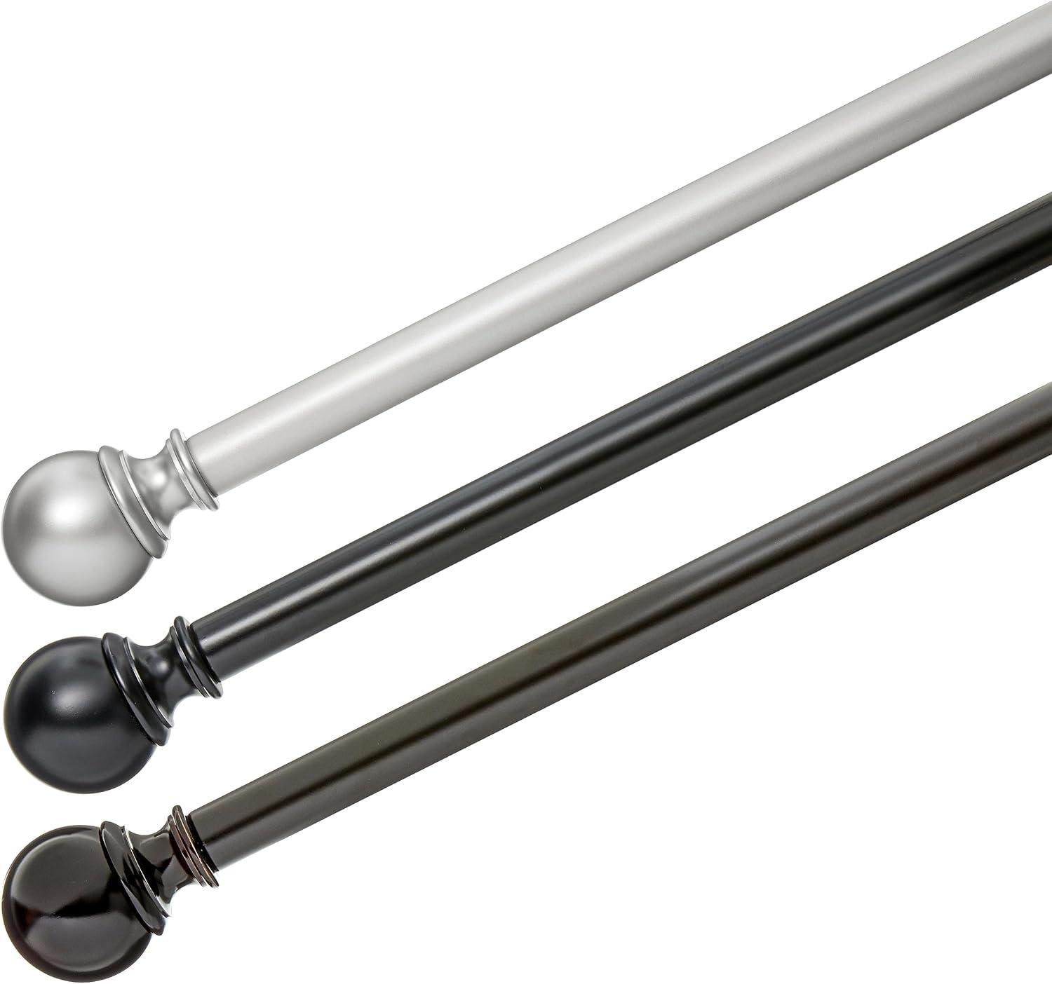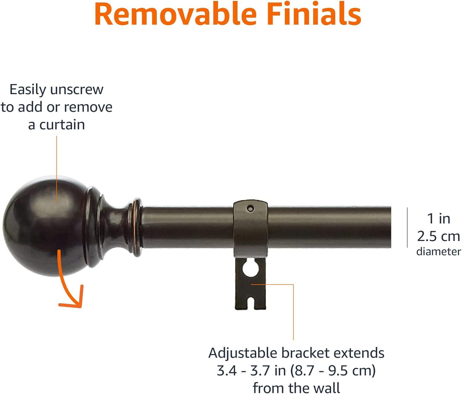 Enjoy the balance of style and functionality with the Amazon Basics Curtain Rod with Round Finials. Designed to cater to both aesthetic and practical needs, this curtain rod provides an adjustable length, making it an ideal option as a long curtain rod for different settings. These rods offer support for heavier fabrics, easily handling up to 22 pounds. The package includes sturdy wall mount hardware, for a simple and no-hassle installation; allowing you to adjust the width for optimal coverage and precise space control. These curtain rods are versatile enough to double as a sliding door curtain rod or for expansive window treatments.