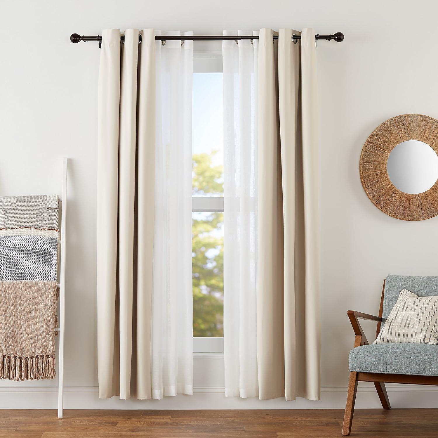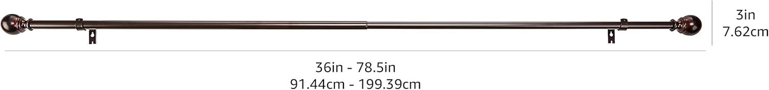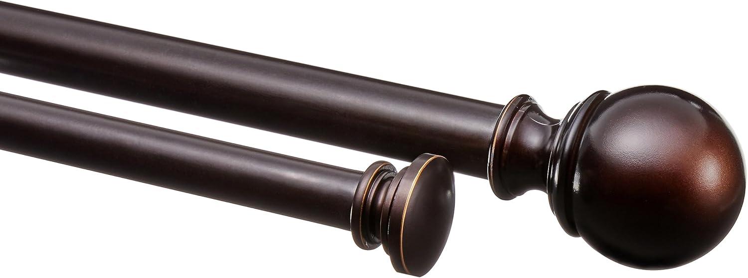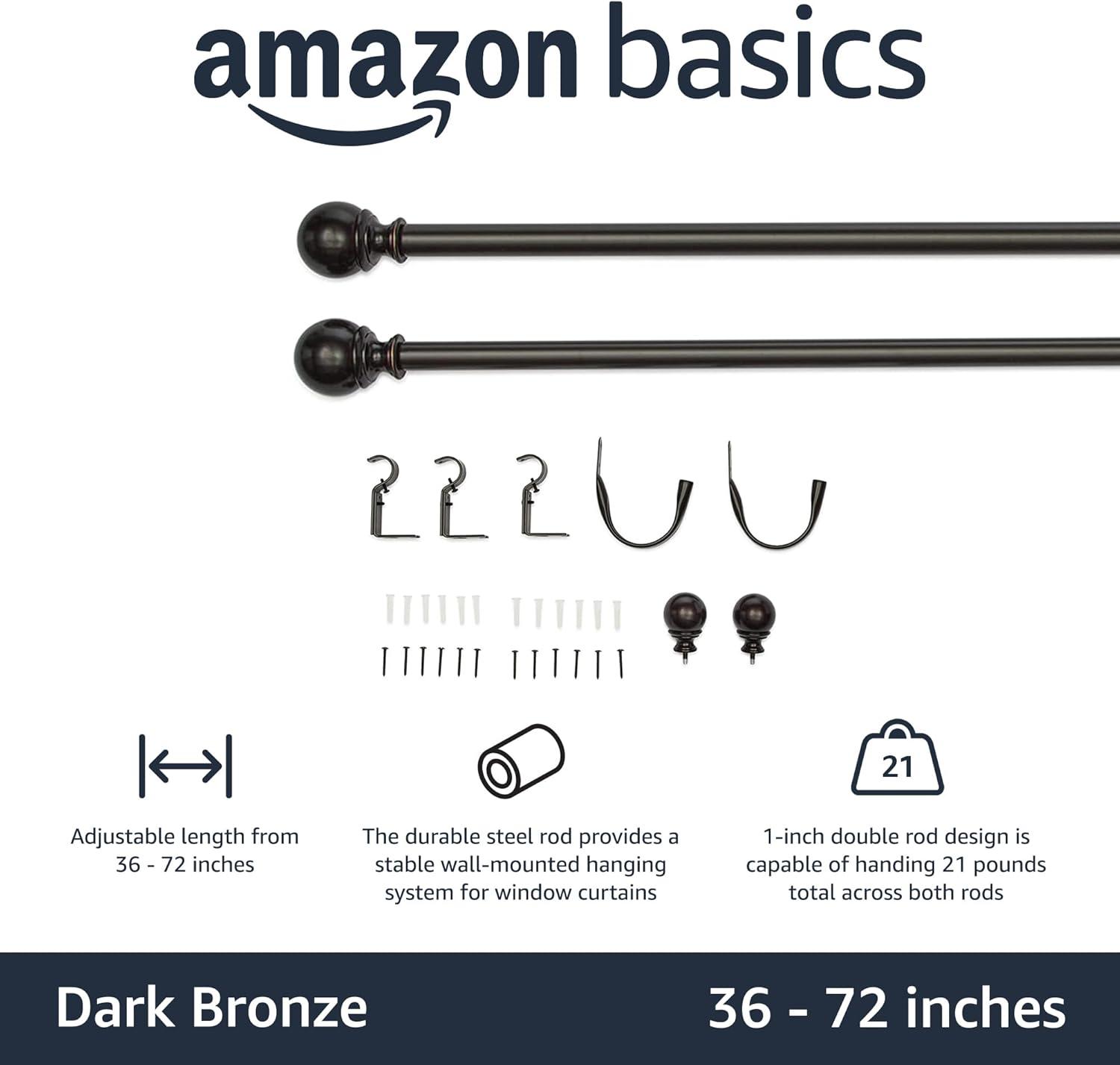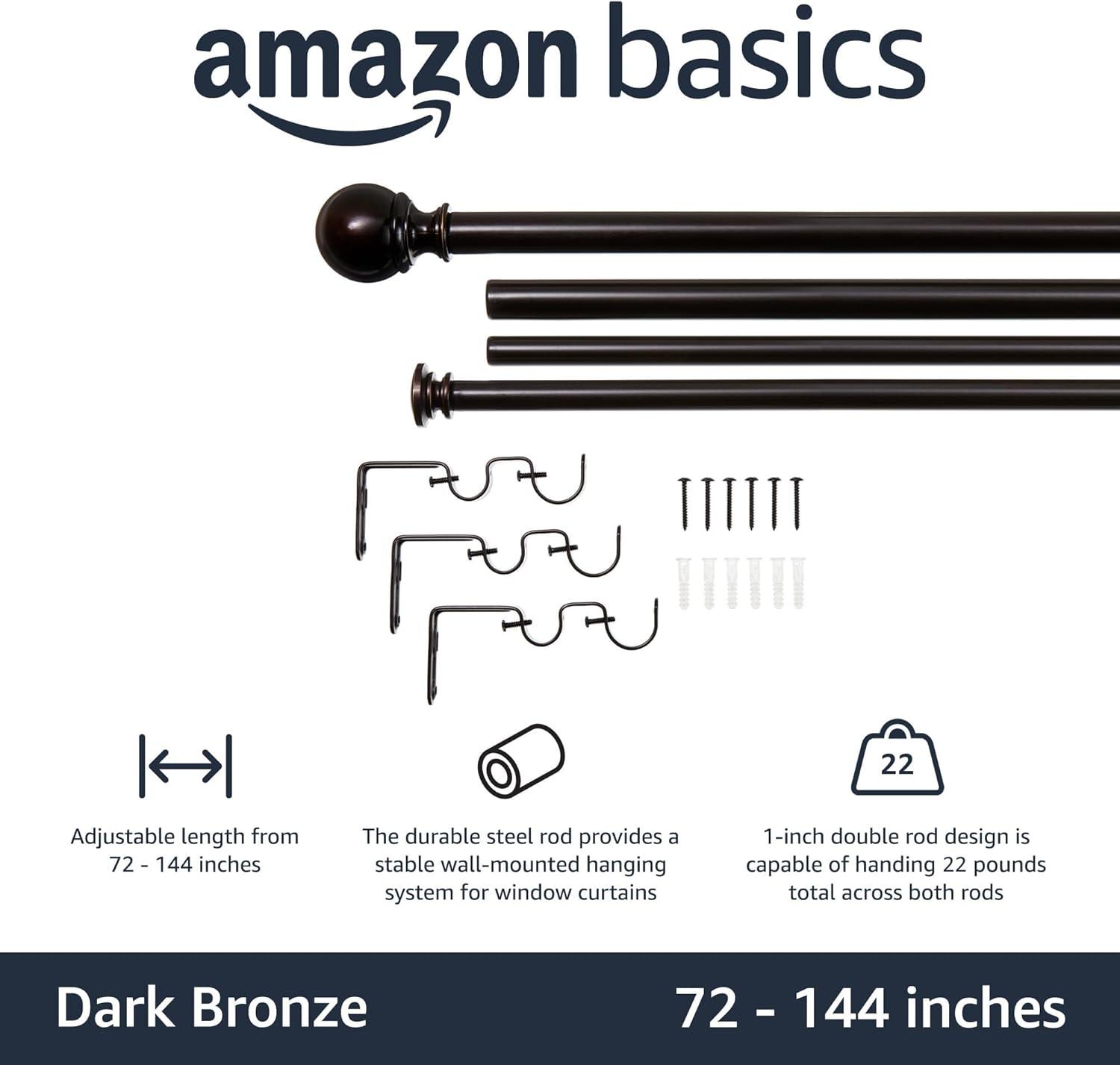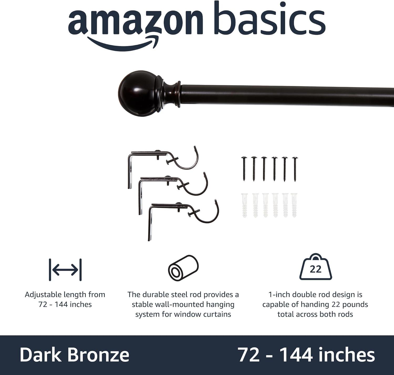 Amazon Basics Adjustable Curtain Rods for Windows, Round Finials, 1-Inch Rod, 72″ to 144″, Dark Bronze, Pack of 1(Bronze)