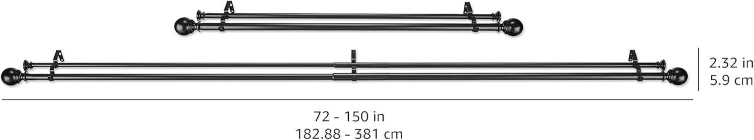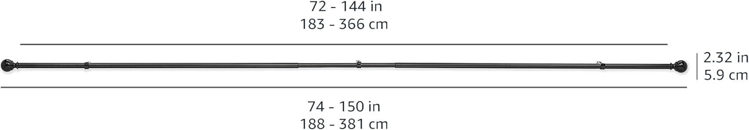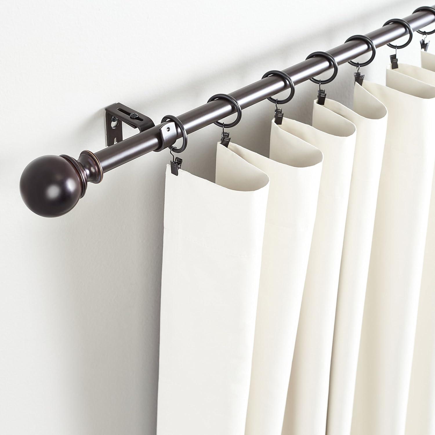 Amazon Basics Adjustable Curtain Rods for Windows, Round Finials, 1-Inch Rod, 72″ to 144″, Dark Bronze, Pack of 1(Black)