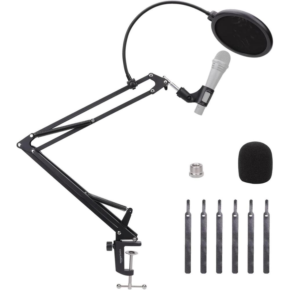 Amazon Basics Adjustable Microphone Stand, Pop Filter, Windscreen, for Blue Yeti, Snowball, Shure, Audio-Technica, other Mics, 19 inch(14 inch (Pack of 6))