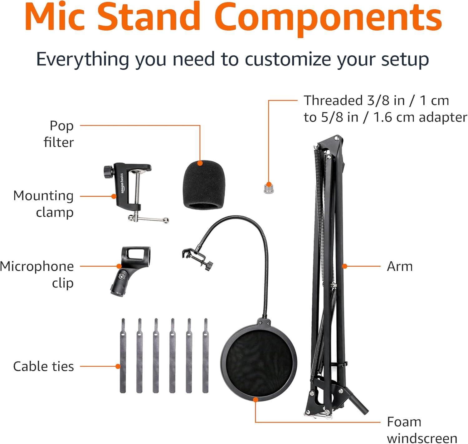 Be the first to review “Amazon Basics Adjustable Microphone Stand, Pop Filter, Windscreen, for Blue Yeti, Snowball, Shure, Audio-Technica, other Mics, 19 inch(19 inch)”