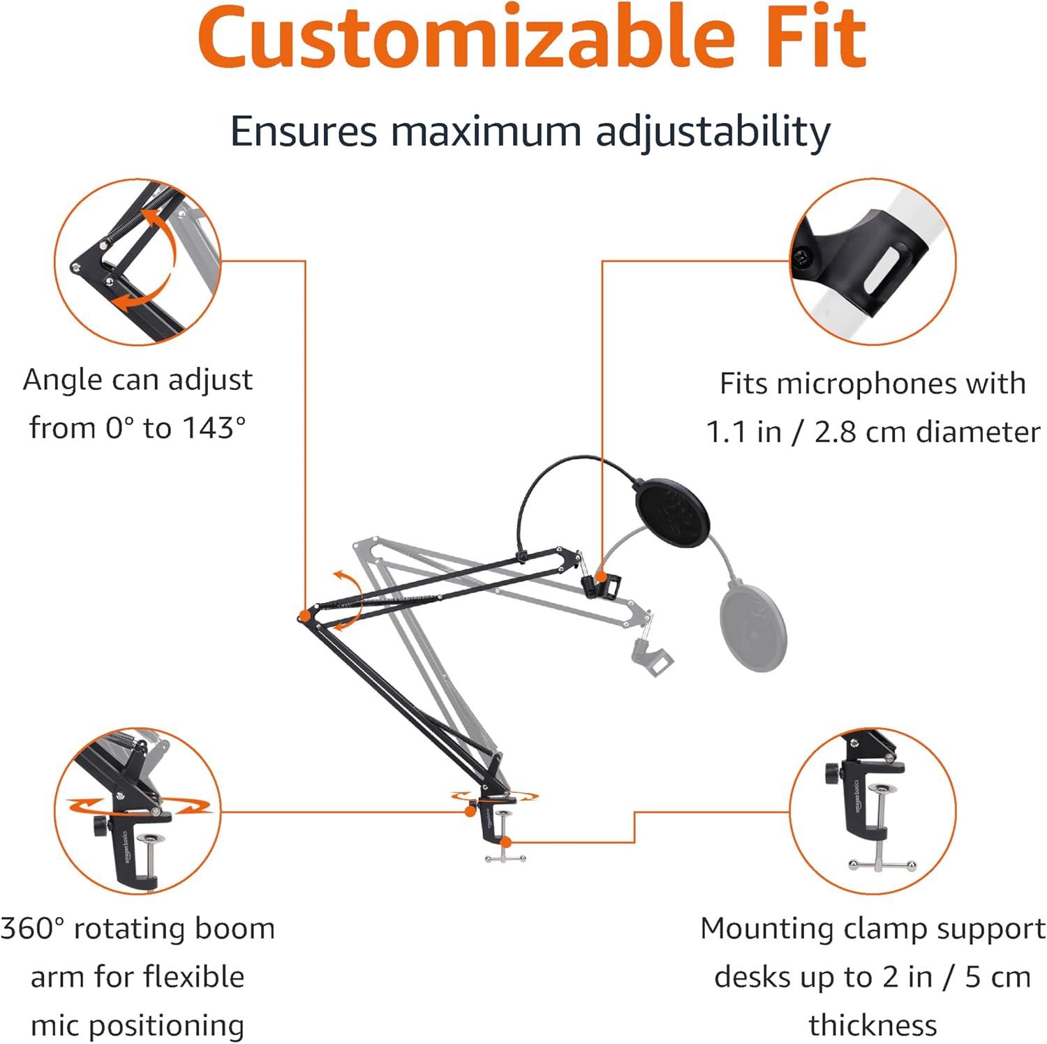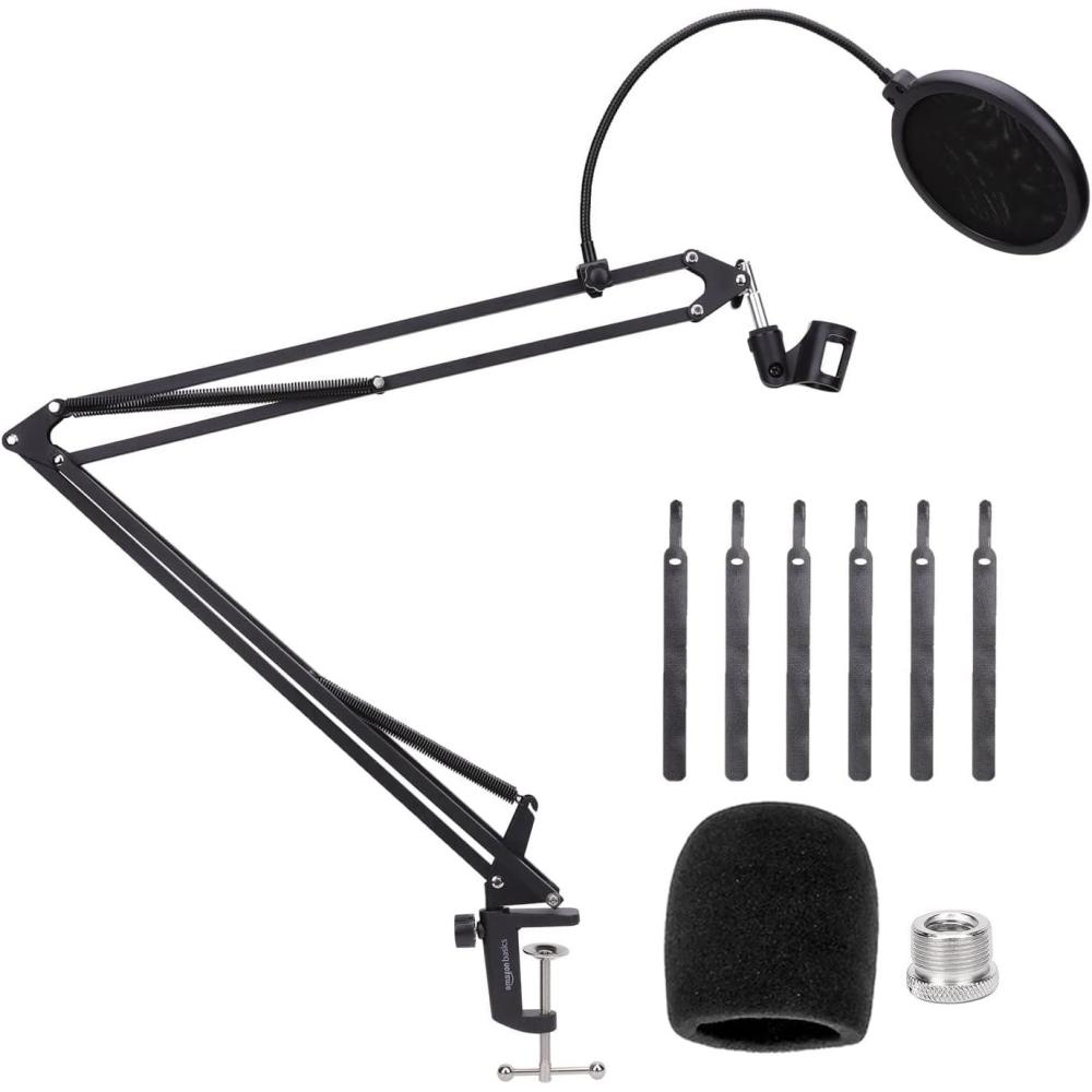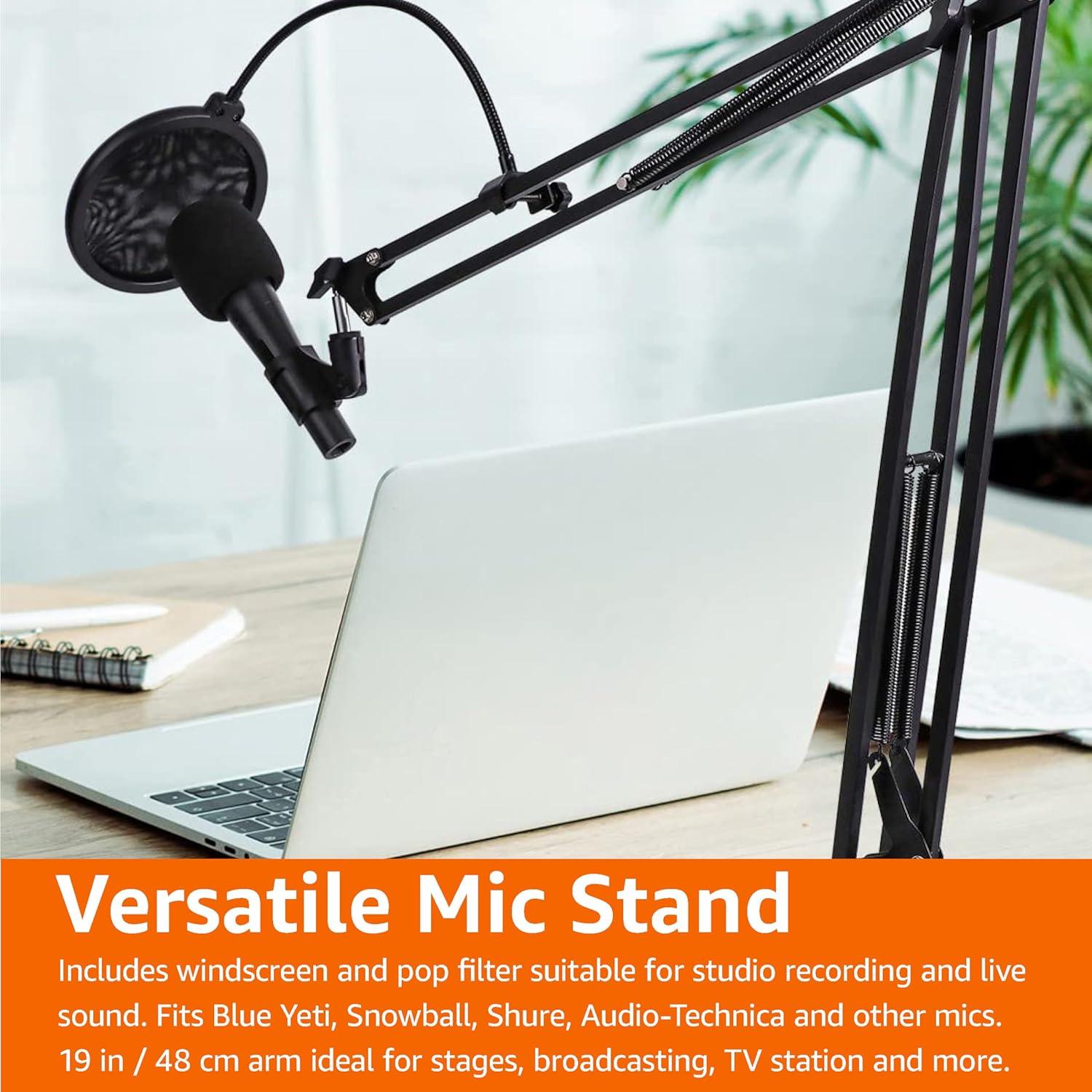 Amazon Basics Adjustable Microphone Stand, Pop Filter, Windscreen, for Blue Yeti, Snowball, Shure, Audio-Technica, other Mics, 19 inch(19 inch)