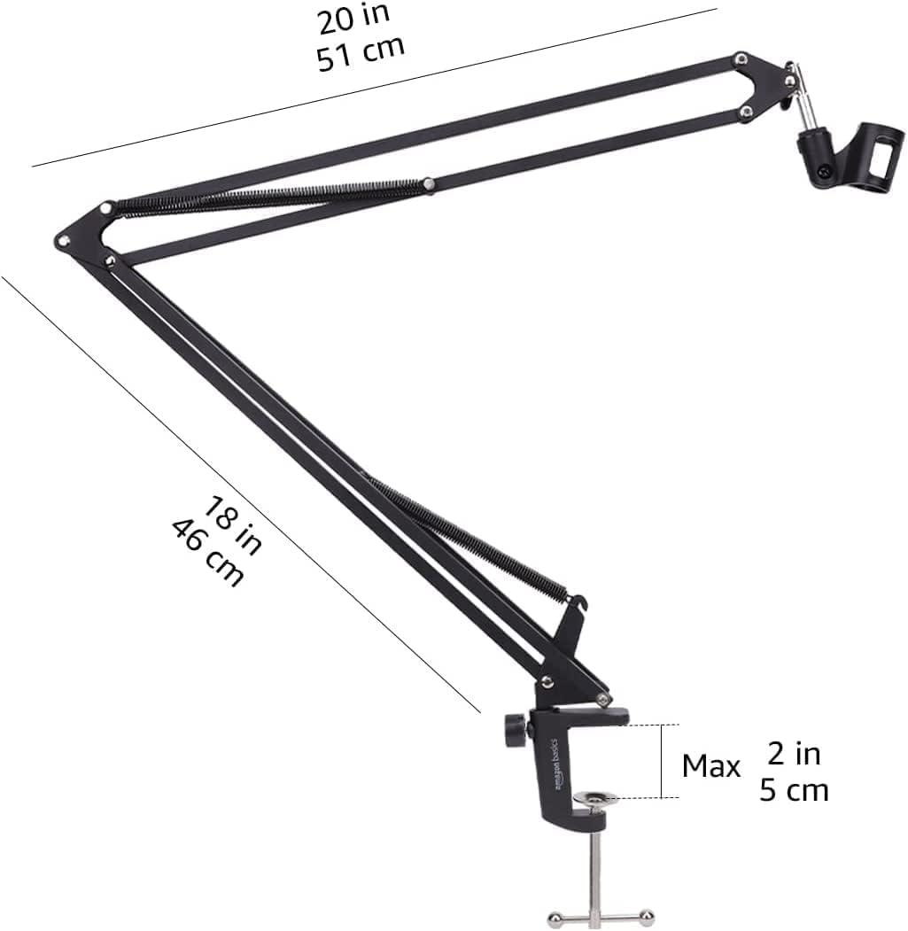 The 3/8″-16 female to 5/8″-27 male screw adapter, included in the package, fits blue snowball and HyperX QuadCast. The microphone clip has a diameter of 1.10″. The Amazon Basics Heavy-Duty Microphone Desk Arm is compatible with most mics including Blue Yeti, Blue Yeti Pro, and Snowball. With a wide range of compatibility and high-quality sound support, this microphone stand can be used as a gaming microphone, or insetting up a recording studio.