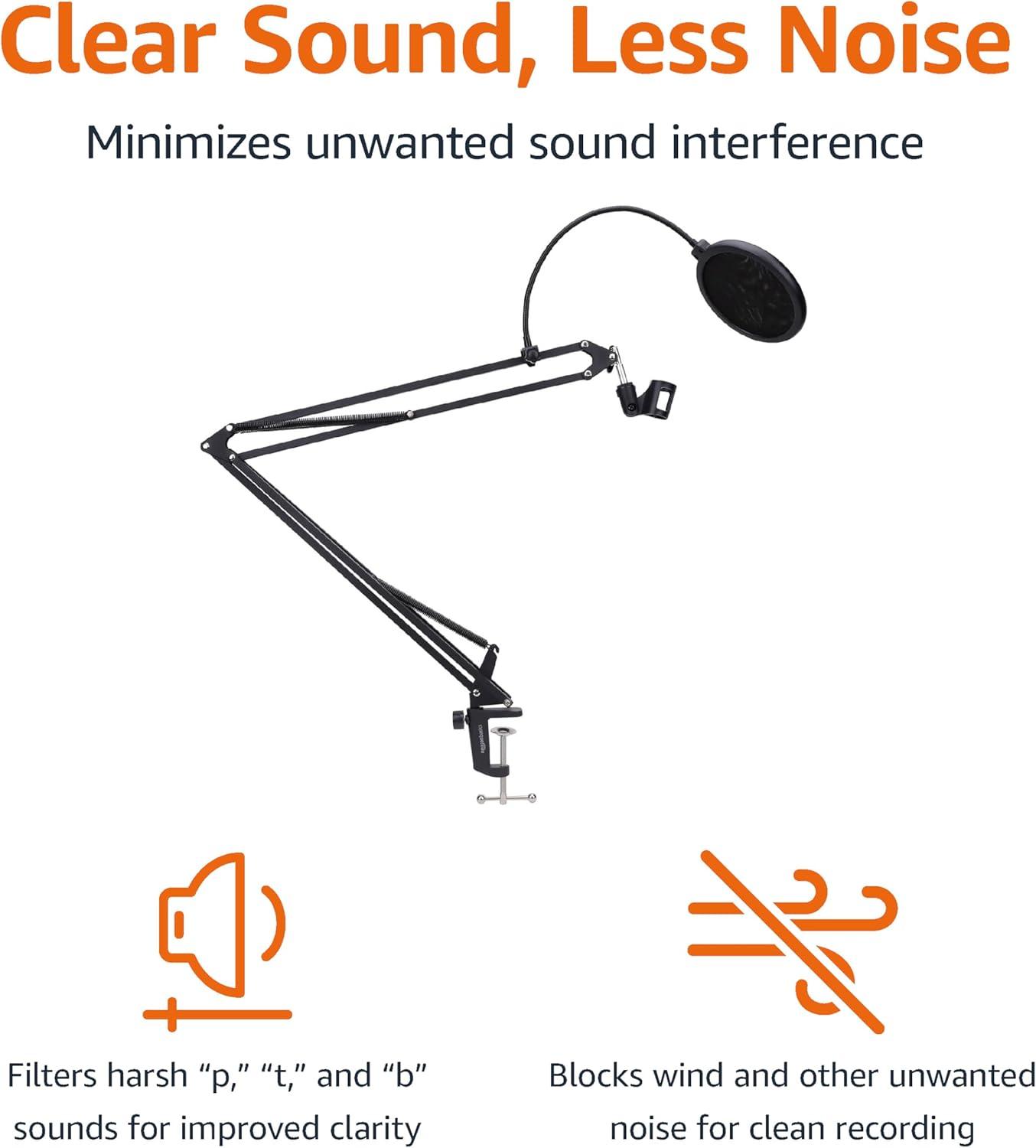 imageAmazon Basics Adjustable Microphone Stand Pop Filter Windscreen for Blue Yeti Snowball Shure AudioTechnica other Mics 19 inch19 inch