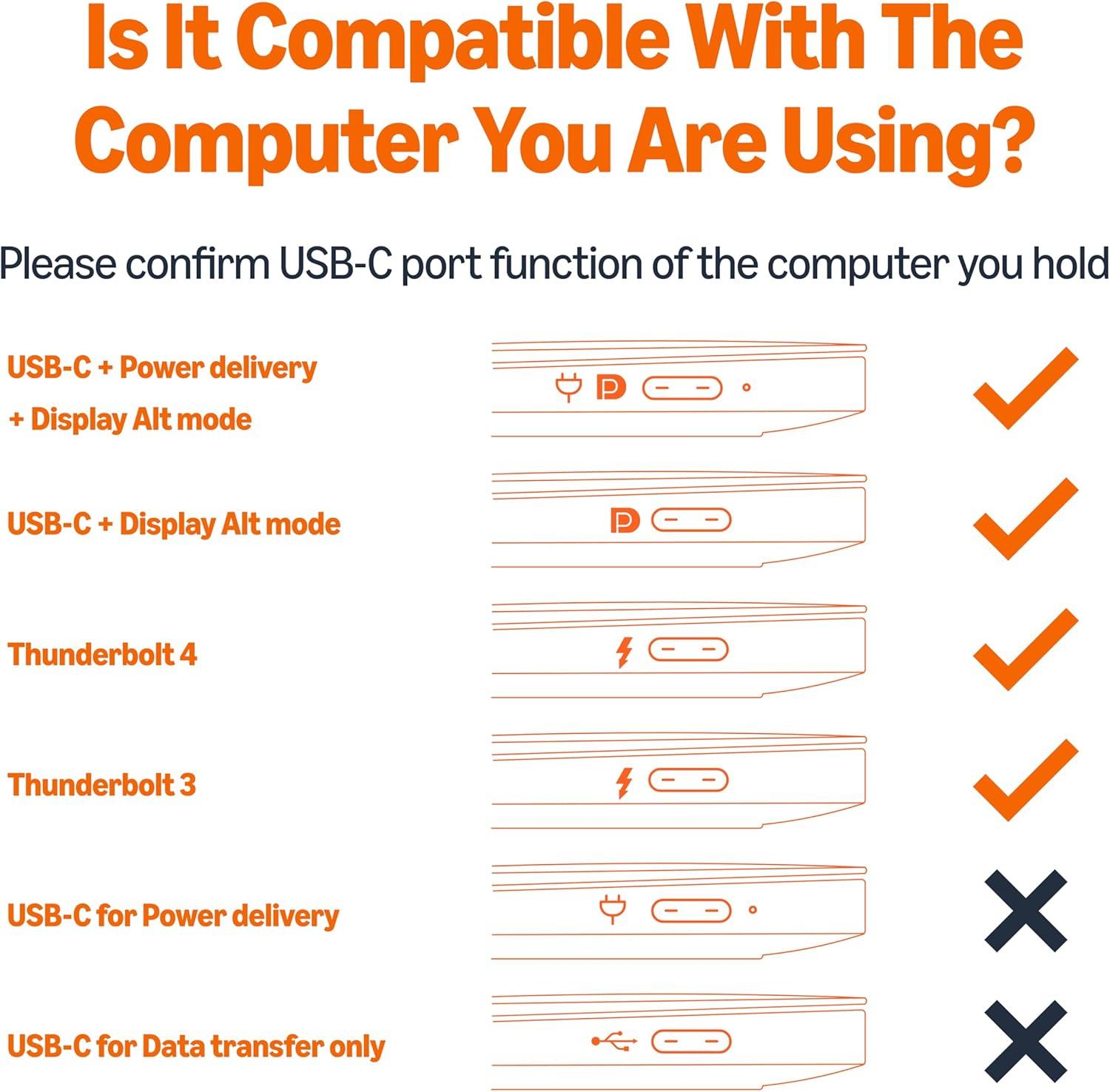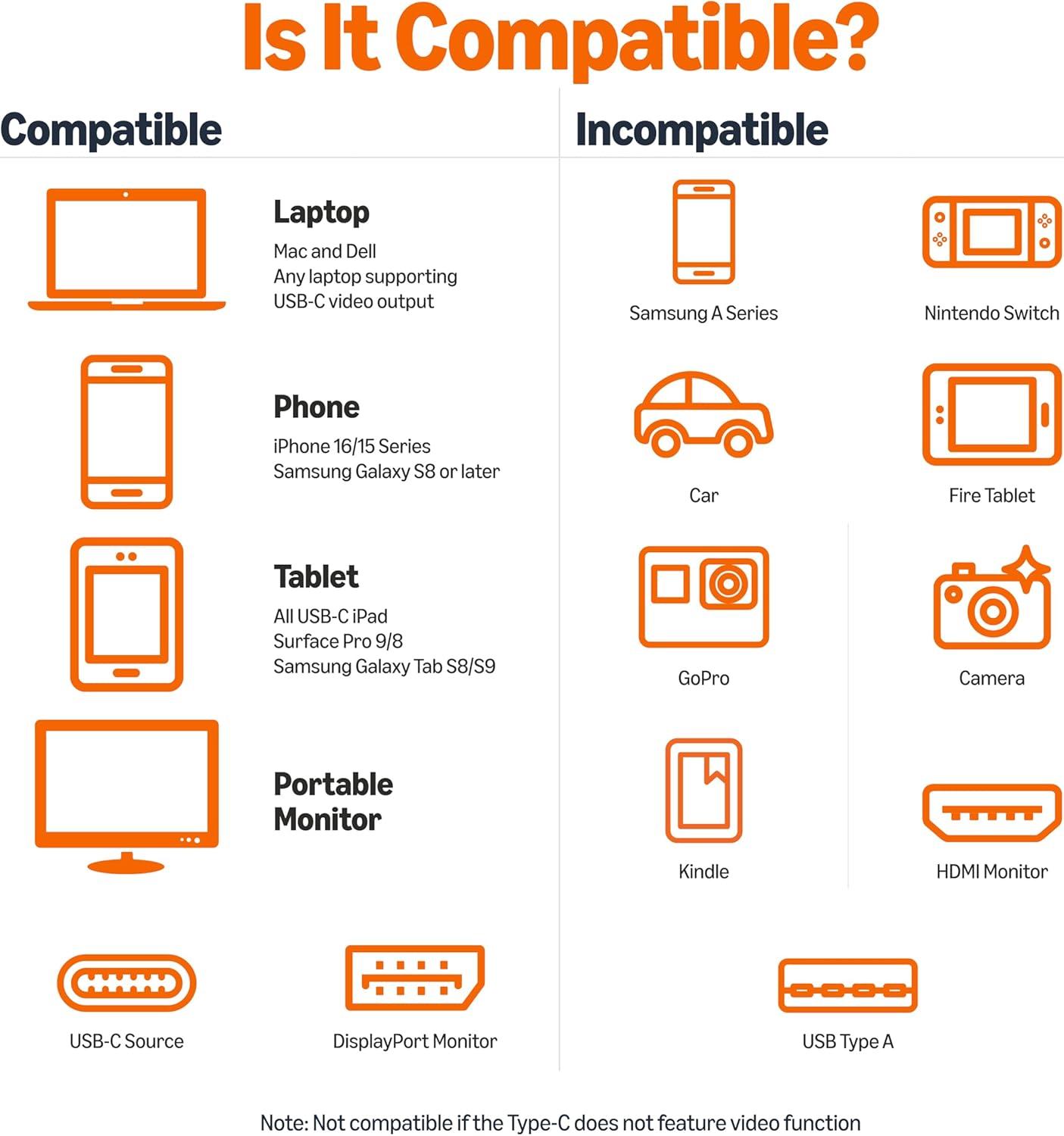 PLUG & PLAY: No extra driver/software needed; host’s USB-C port requires DP 1.2 Alt Mode to view video over USB-C (not all USB-C ports support Alt Mode functionality)