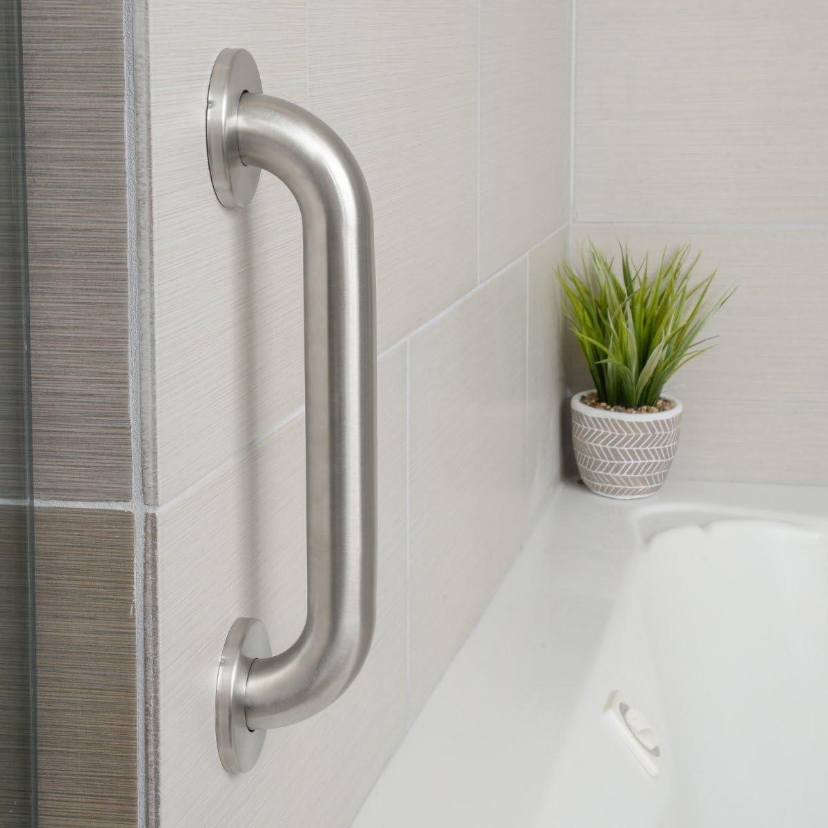Amazon Basics Bathroom Handicap Safety Grab Bar, 16 Inch Length, 1.25 Inch Diameter, Holds up to 500LBs, ADA Compliant, Stainless Steel(1.50-Inch Diameter)