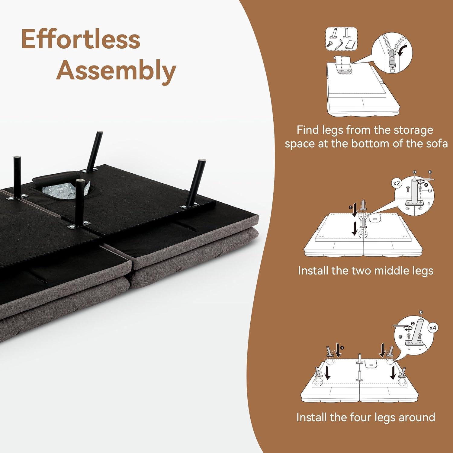 Simple Assembly Needed:This futon sofa couch comes in a box for easy quick assembly. Follow the user manual provided with it and it will be ready for use in just 20 minutes! Then you can enjoy your new sofa!