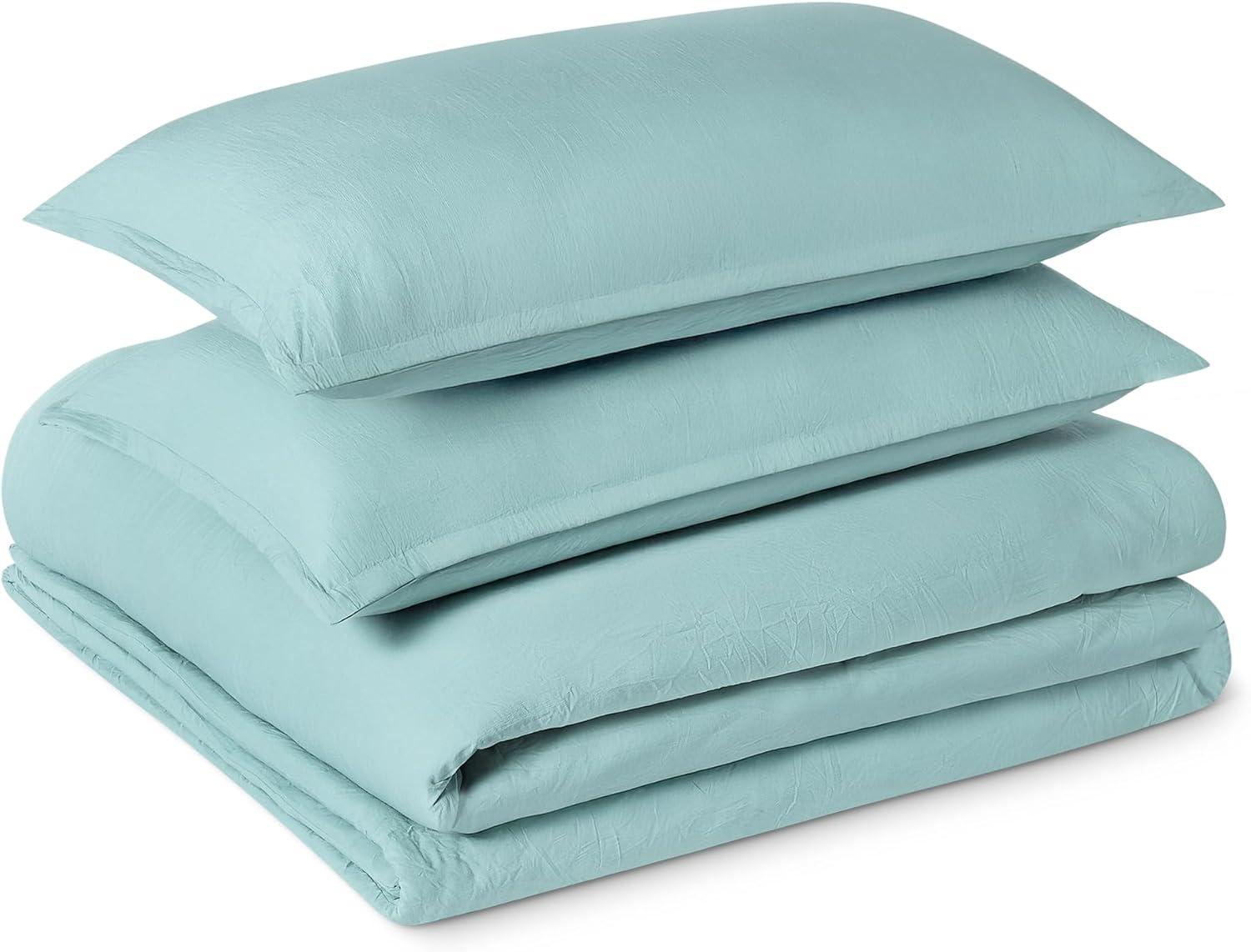 Amazon Basics Brushed Microfiber Comforter Set, Extra Soft with Natural Texture, 3-Piece, King, Beige(Blue)