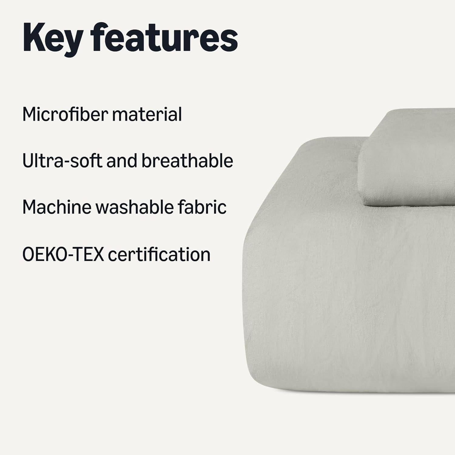 Amazon Basics Brushed Microfiber Comforter Set, Extra Soft with Natural Texture, 3-Piece, King, Beige(Grey)