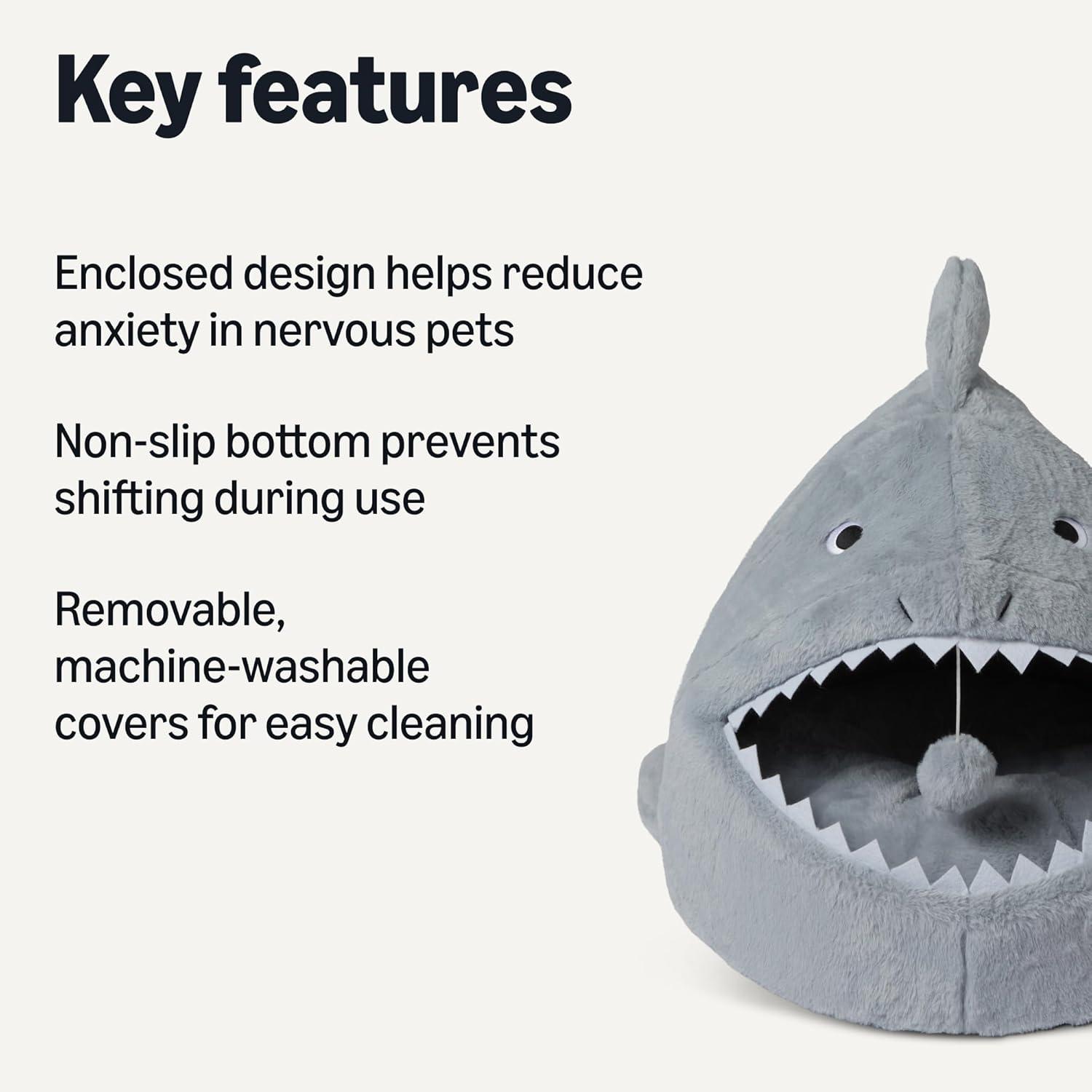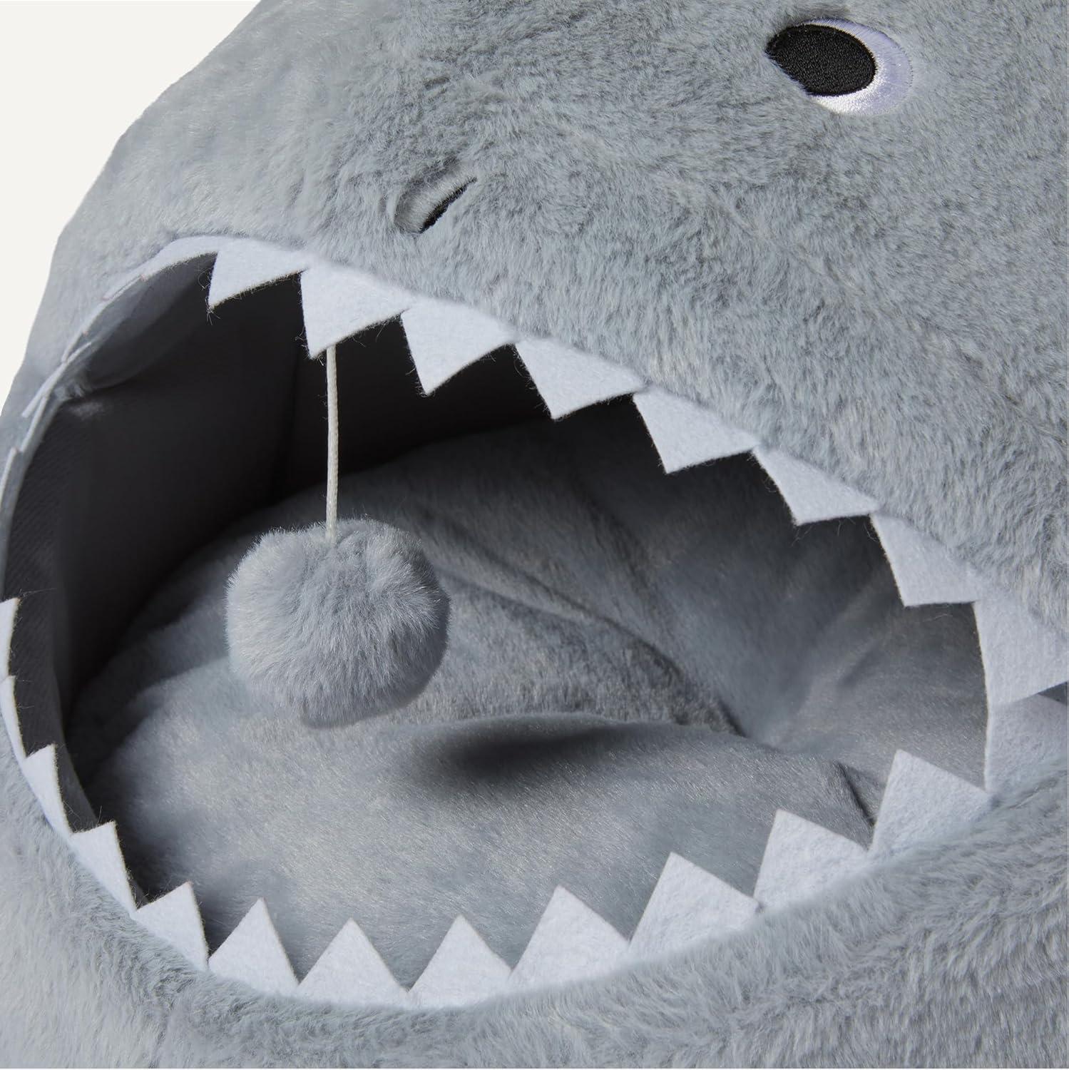 Plush cat bed with cute shark design offers your cat, small dog, or other small pet a comfortable place to rest