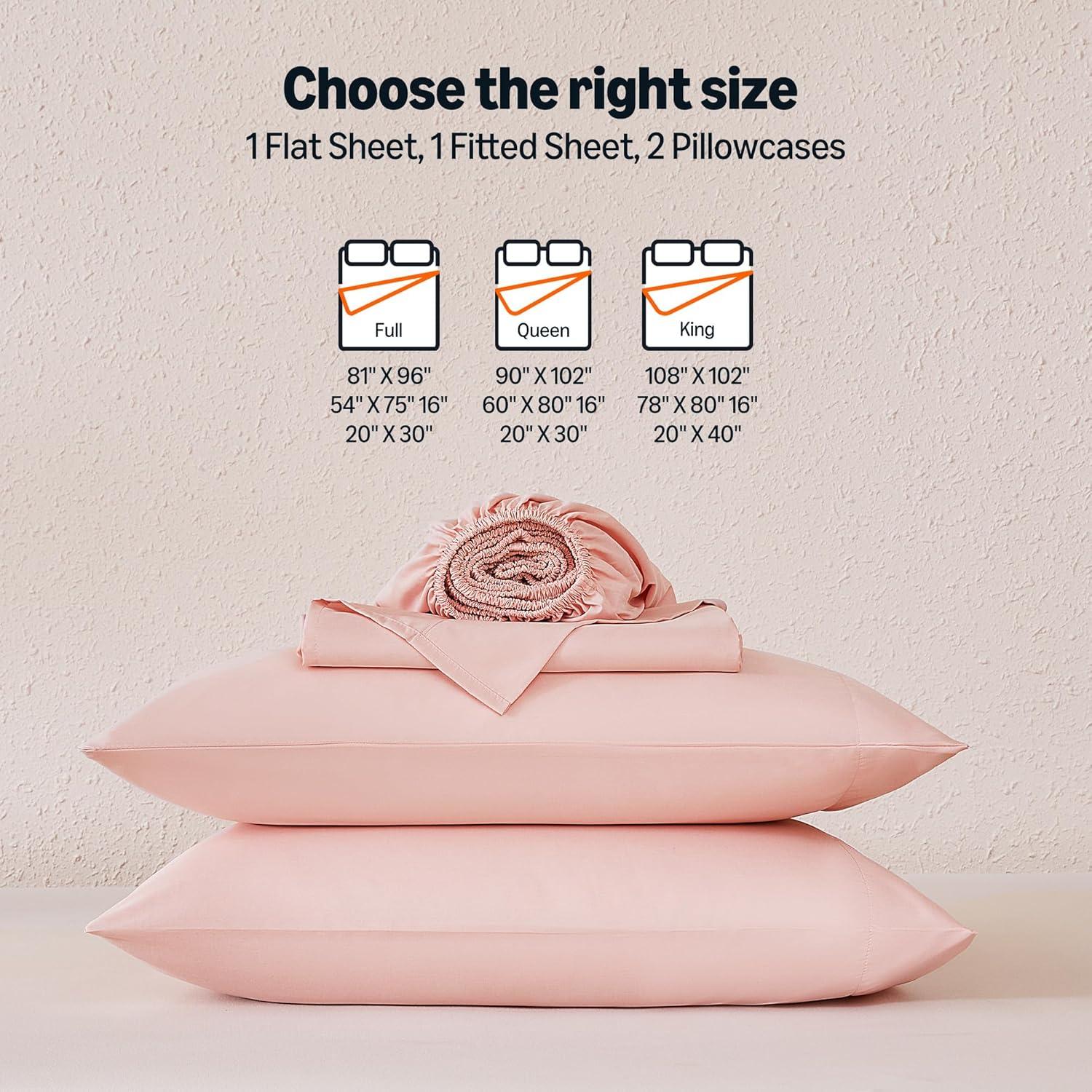 WHAT'S INCLUDED: Queen-size set with 1 Flat Sheet (90″ x 102″),1 Fitted Sheet (60″ x 80″ x 16″), 2 Pillowcases (20″ x 30″)