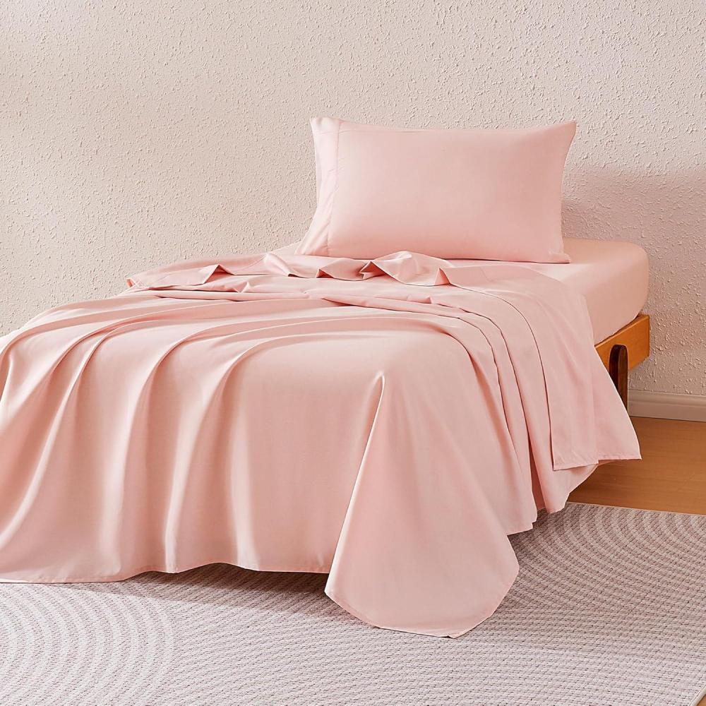 Get your hands on our newest Amazon Basics Cationic Microfiber 4-Piece Sheet Set, Wrinkle Free and Easy Fit, 1 Flat Sheet, 1 Fitted Sheet and 2 Pillowcases, Queen, Grey(Pink) and enjoy a limited-time discount offer.