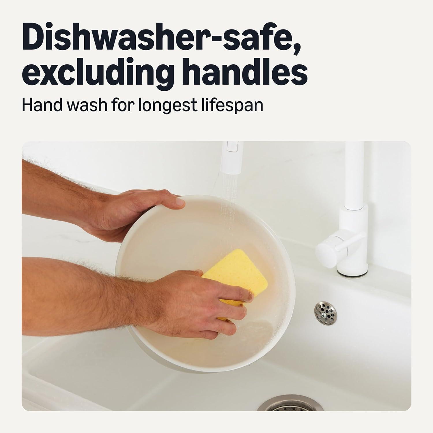 DISHWASHER-SAFE: Pots, pans, and lids are dishwasher-safe for easy cleaning and maintenance; wash handles by hand
