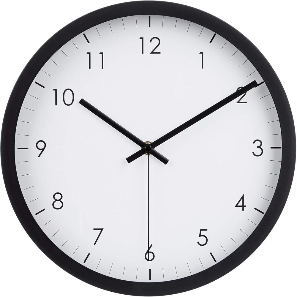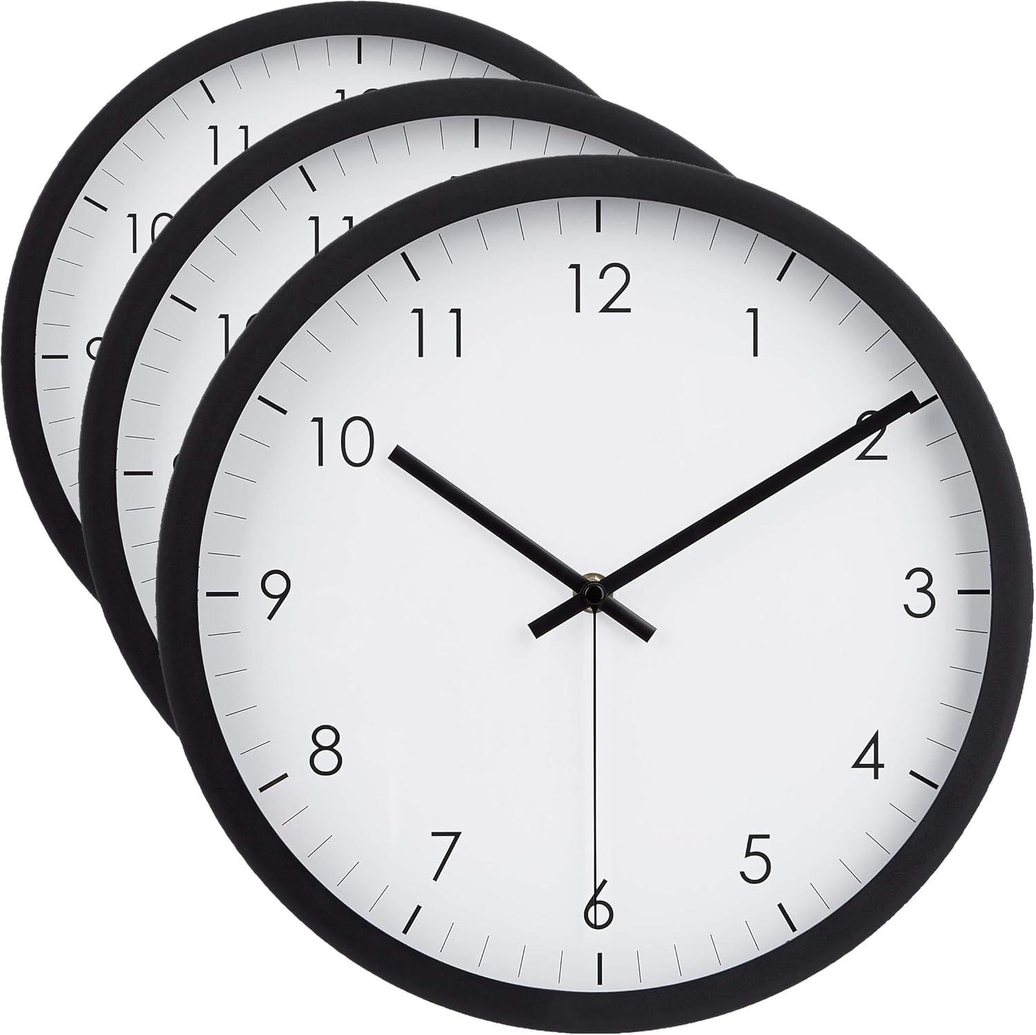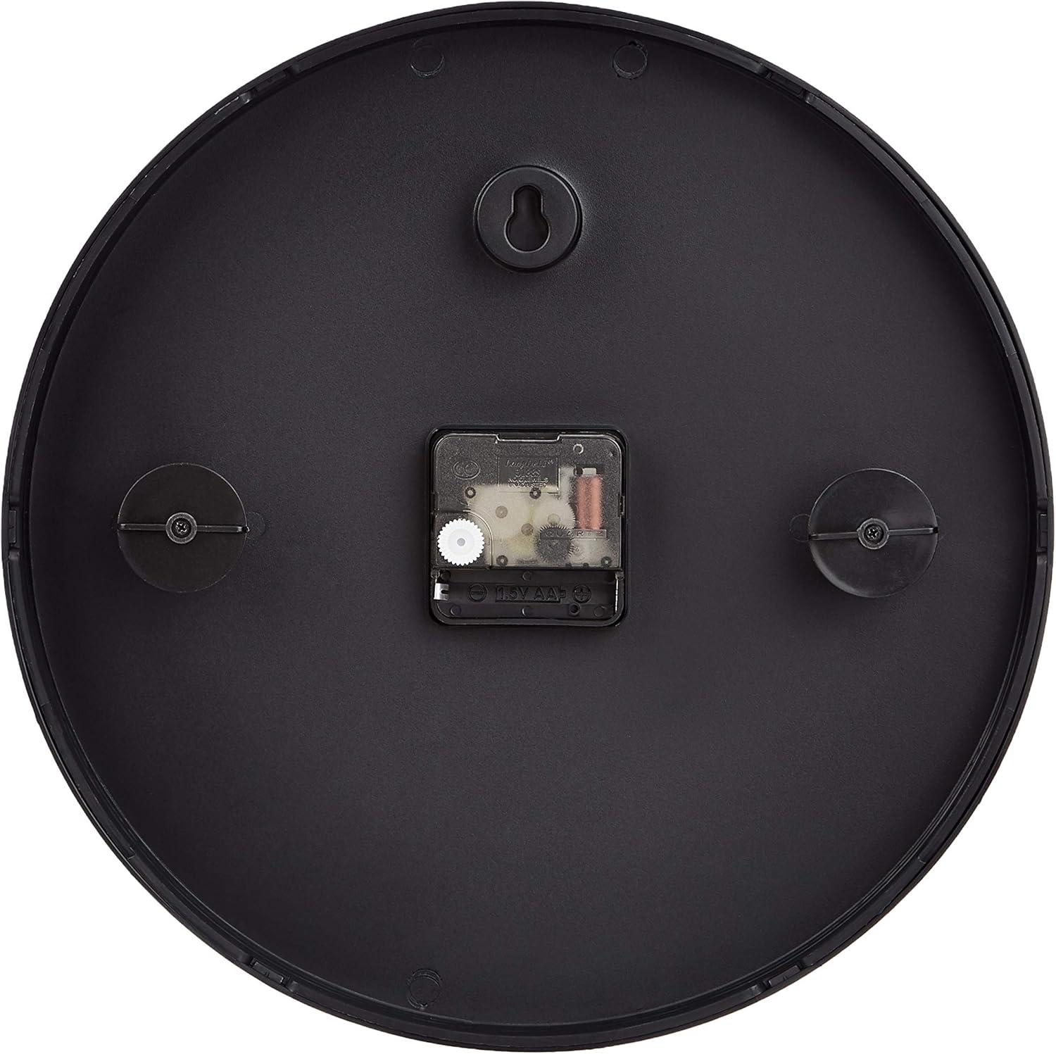 Amazon Basics Classic 12" Round Wall Clock, Easy to Read, Silent Non Ticking, Battery Operated, Black(Black)