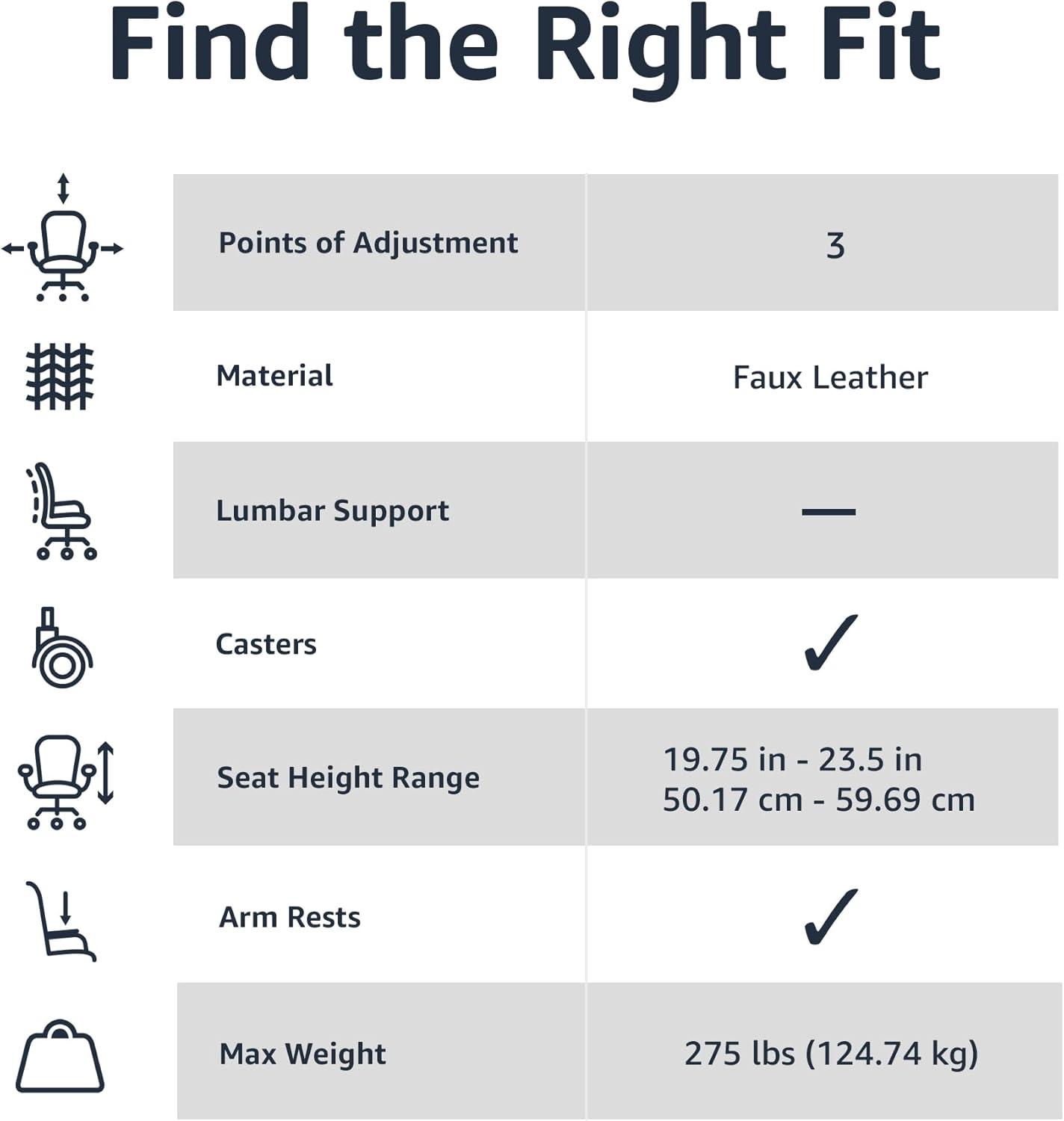 Amazon Basics Classic Puresoft PU-Padded Mid-Back Office Computer Desk Chair with Armrest – Black