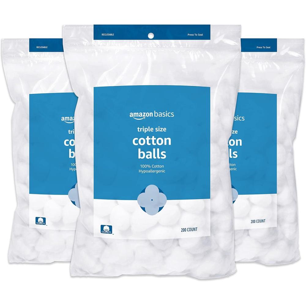 Includes 200 Amazon Basics Cotton Balls; Pack of three (600 balls total)