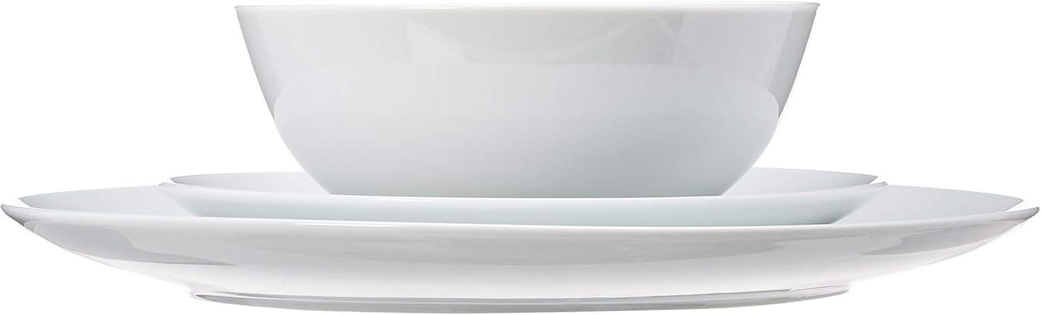 Amazon Basics Dinnerware Set, Microwave and Dishwasher Safe, Service for 6, 18-Piece Complete Kitchen, Plates, Dishes, Bowls, White Porcelain Coupe(White Porcelain Coupe)