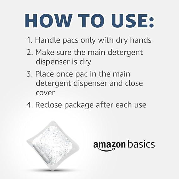 Amazon Basics Dishwasher Detergent Pacs combine grease-fighting detergent and rinse aid into a dishwasher pod. It comes in convenient packaging and is easy to use for a hassle-free dishwashing experience. The fresh scented dish soap pac leaves dishes sparkling clean. With its improved pac fit in your dishwasher, it allows for easy close of the lid. For best results use one pac per wash, handle with dry hands, and ensure dishwasher soap tray is dry before placing in the pac. Do not unwrap or puncture the dishwasher detergent pac. It's always a good idea to have well-stocked dishwashing supplies at home. Running low? Use your Echo device or Alexa on the Amazon app to reorder by voice. Just say “Alexa, reorder Amazon Basics Dishwasher Detergent Pacs.” Satisfaction Guarantee: We’re proud of our products. If you aren’t satisfied, we’ll refund you for any reason within a year of purchase.