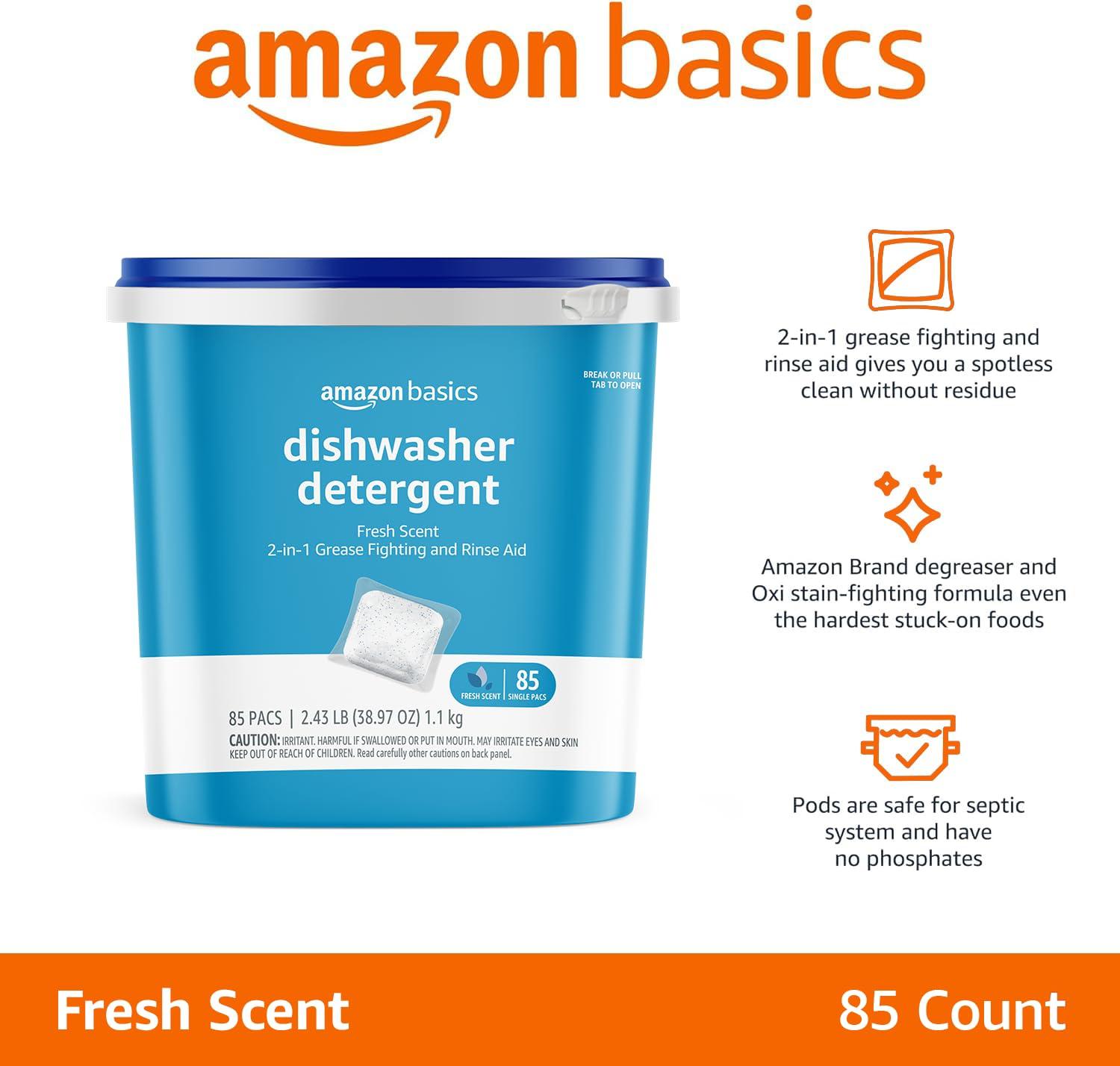 Amazon Basics Dishwasher Detergent Pacs, Fresh Scent, 85 Count (Previously Solimo)