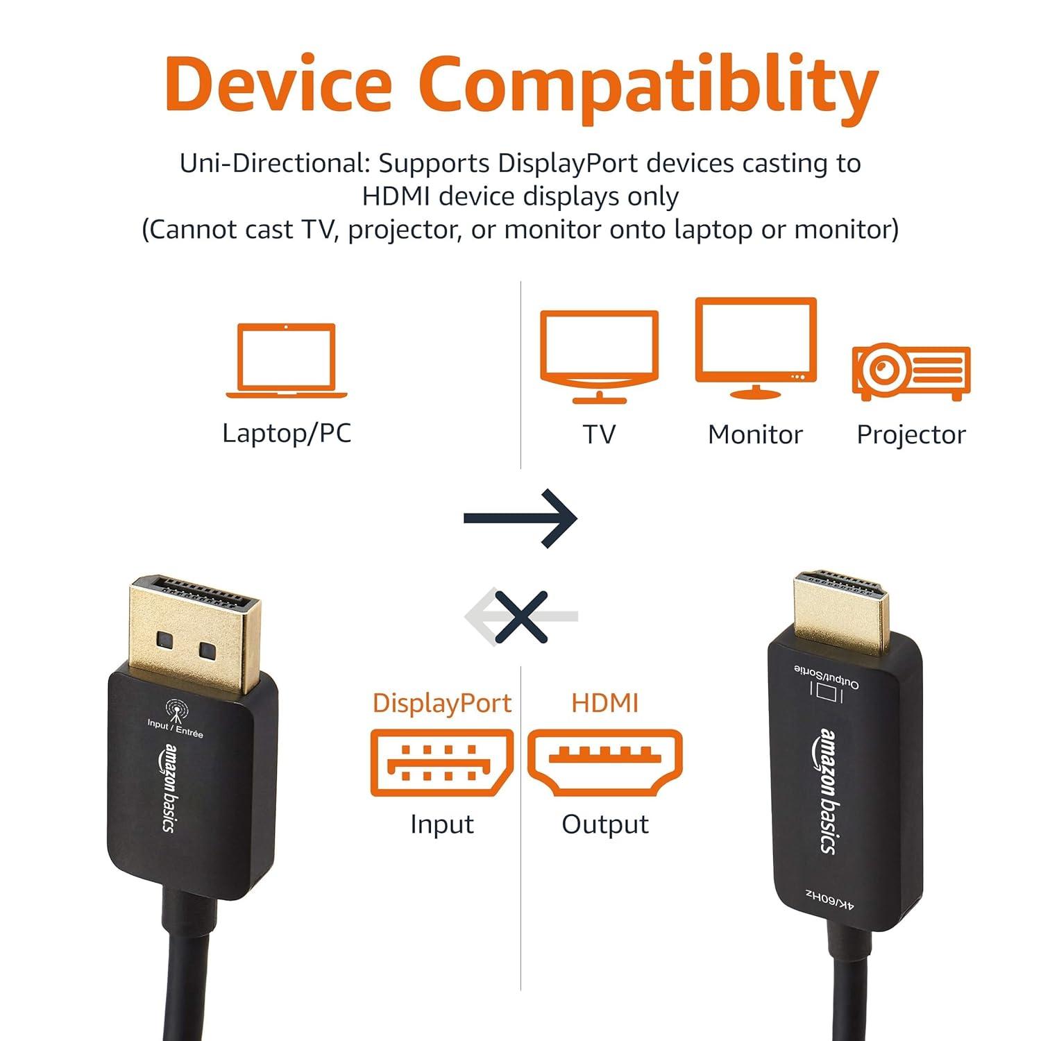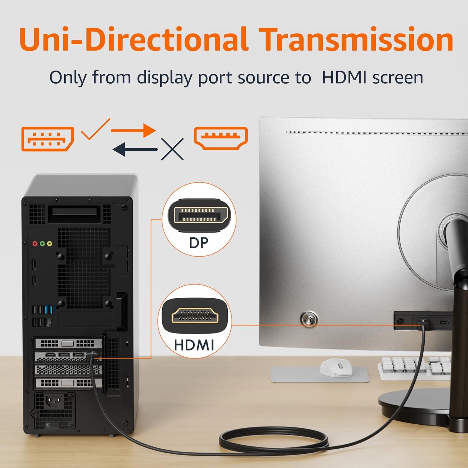 ATTENTION : ONE WAY ONLY (Uni-directional). This cable ONLY works FROM DisplayPort (computer/source) TO HDMI (display/TV). It does NOT support HDMI source to DisplayPort display