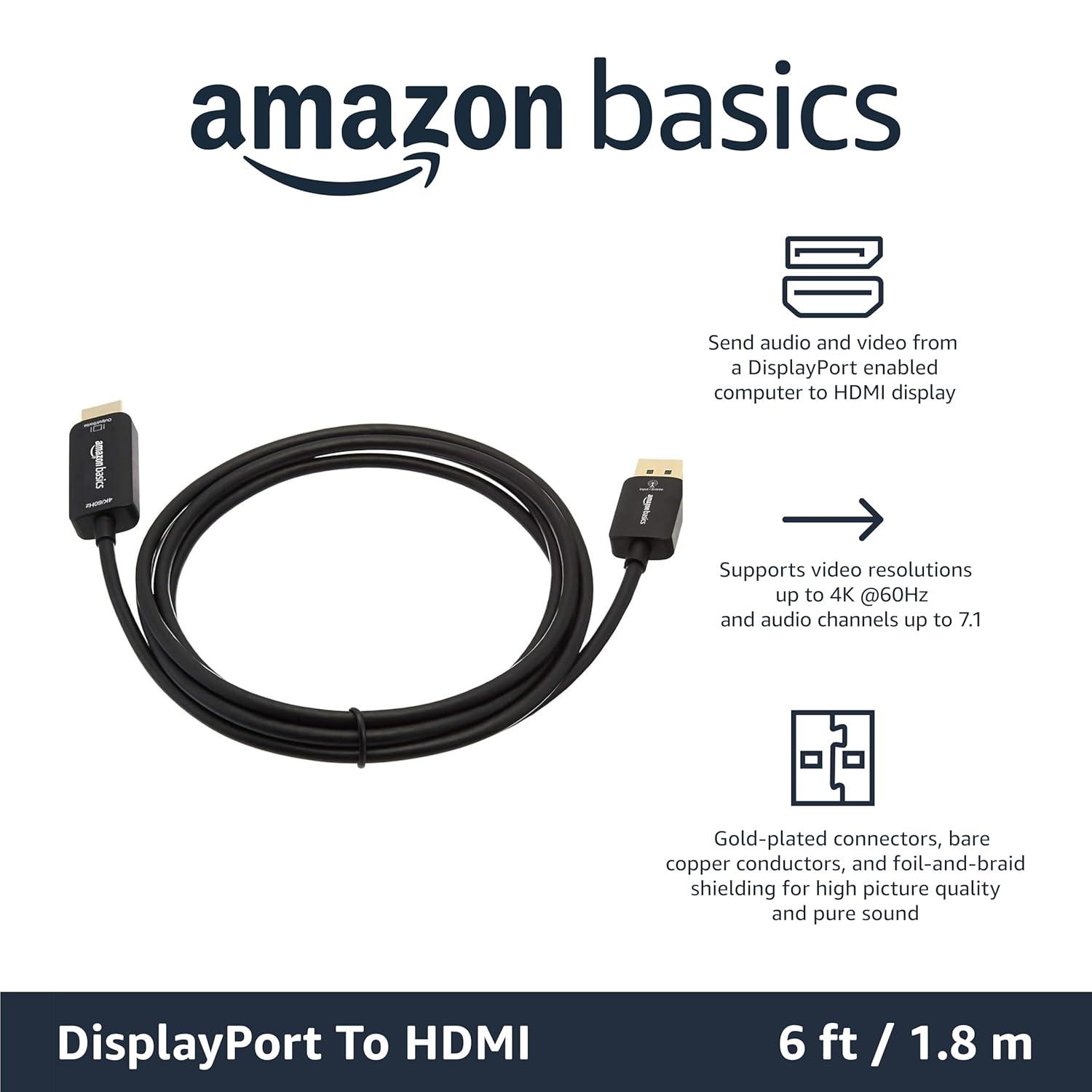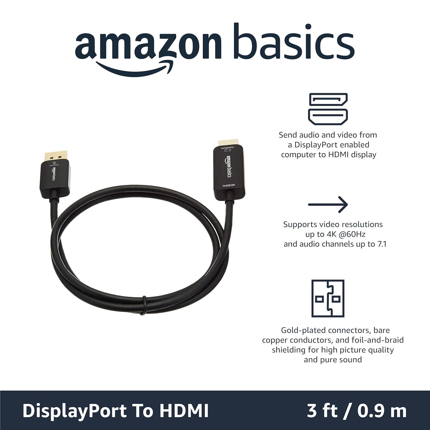 IN THE BOX: (1) 3 foot DisplayPort HDMI display cable for transmitting high-def audio and video from DisplayPort enabled computers to HDMI displays