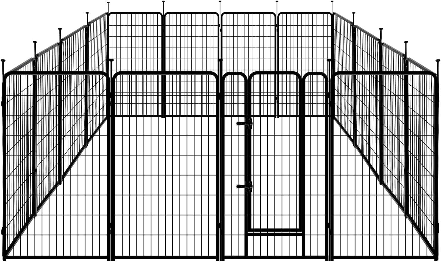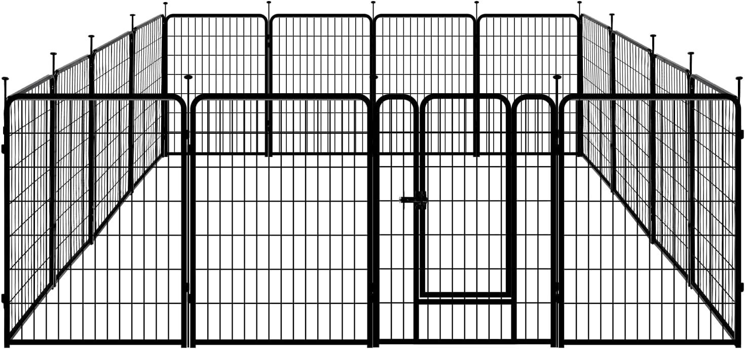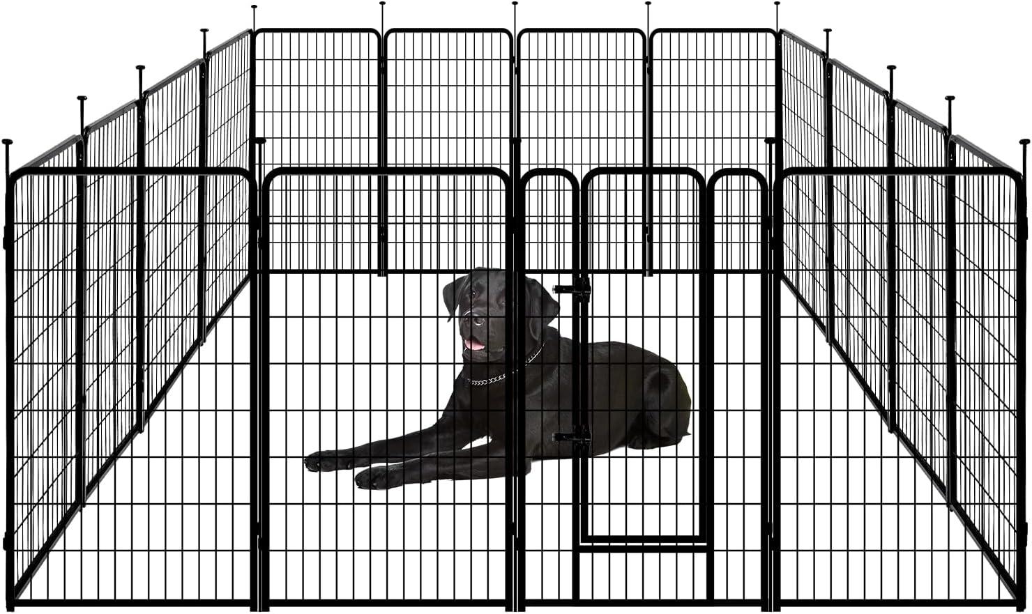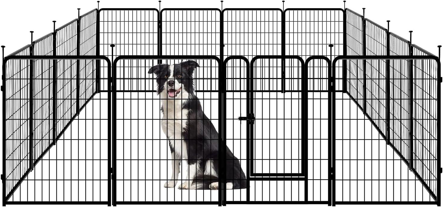 Amazon Basics Dog Playpen, 16 Panels Metal Fence with Door, Foldable for Indoor and Outdoor Use, Suitable for Small to Medium Sized Dogs, 48 Inch Height, Black(Black)