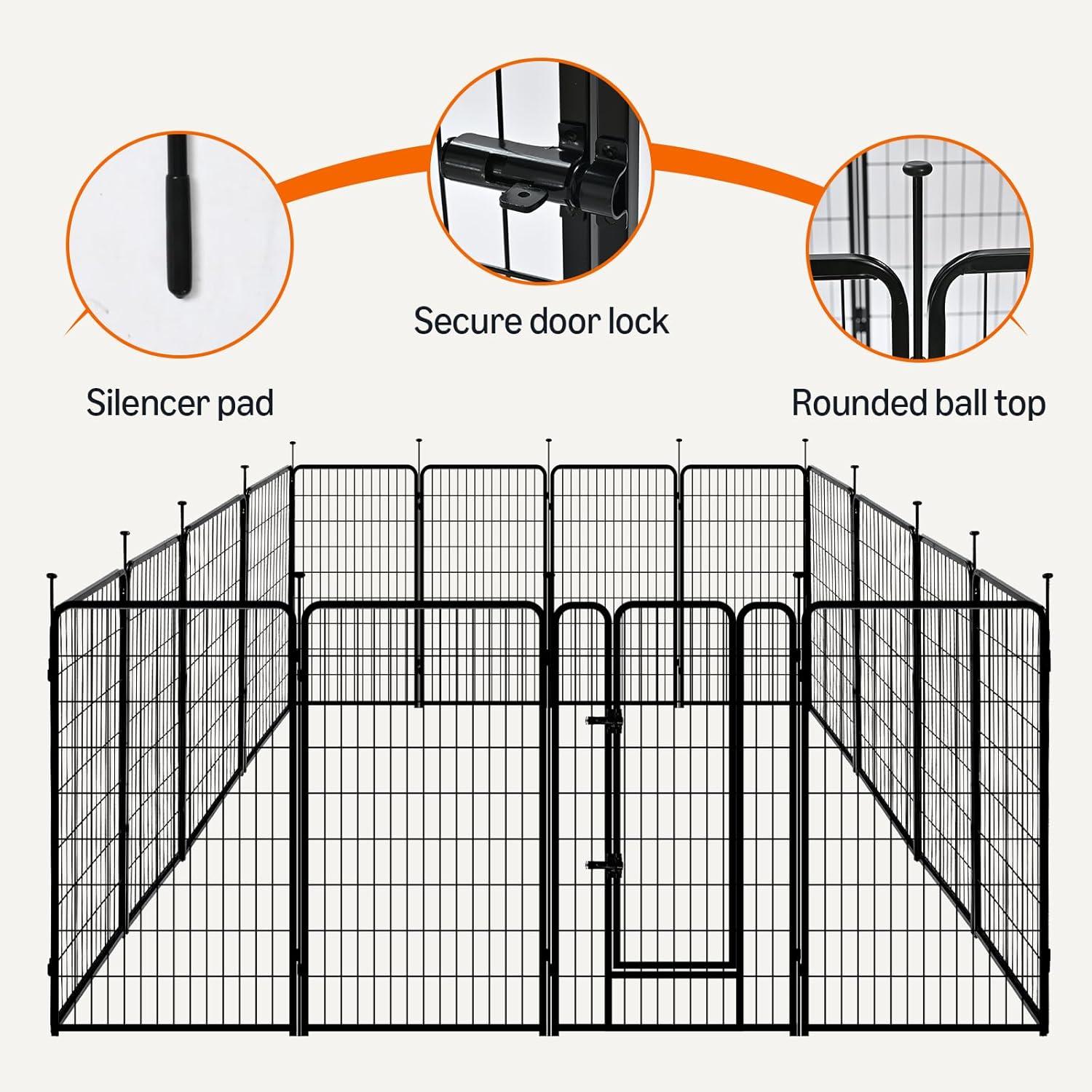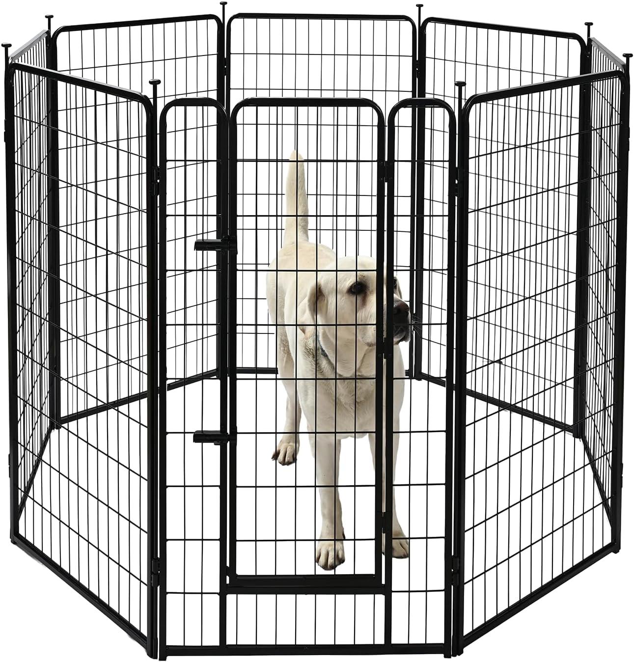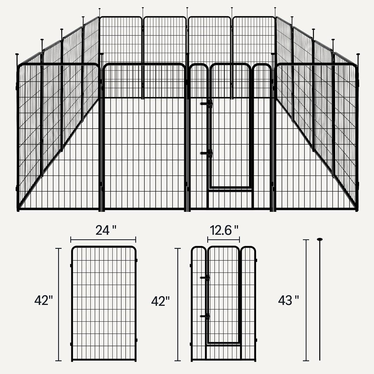 Amazon Basics Dog Playpen, 16 Panels Metal Fence with Door, Foldable for Indoor and Outdoor Use, Suitable for Small to Medium Sized Dogs, 48 Inch Height, Black(Black)