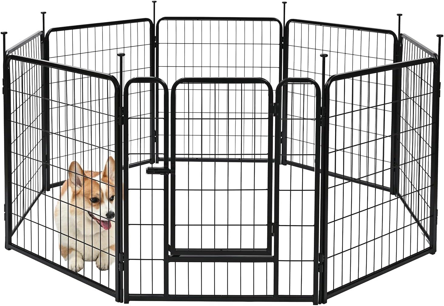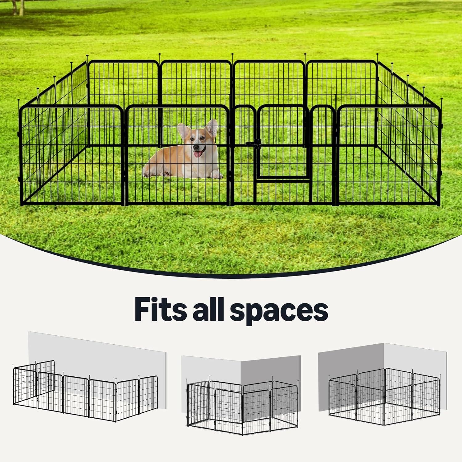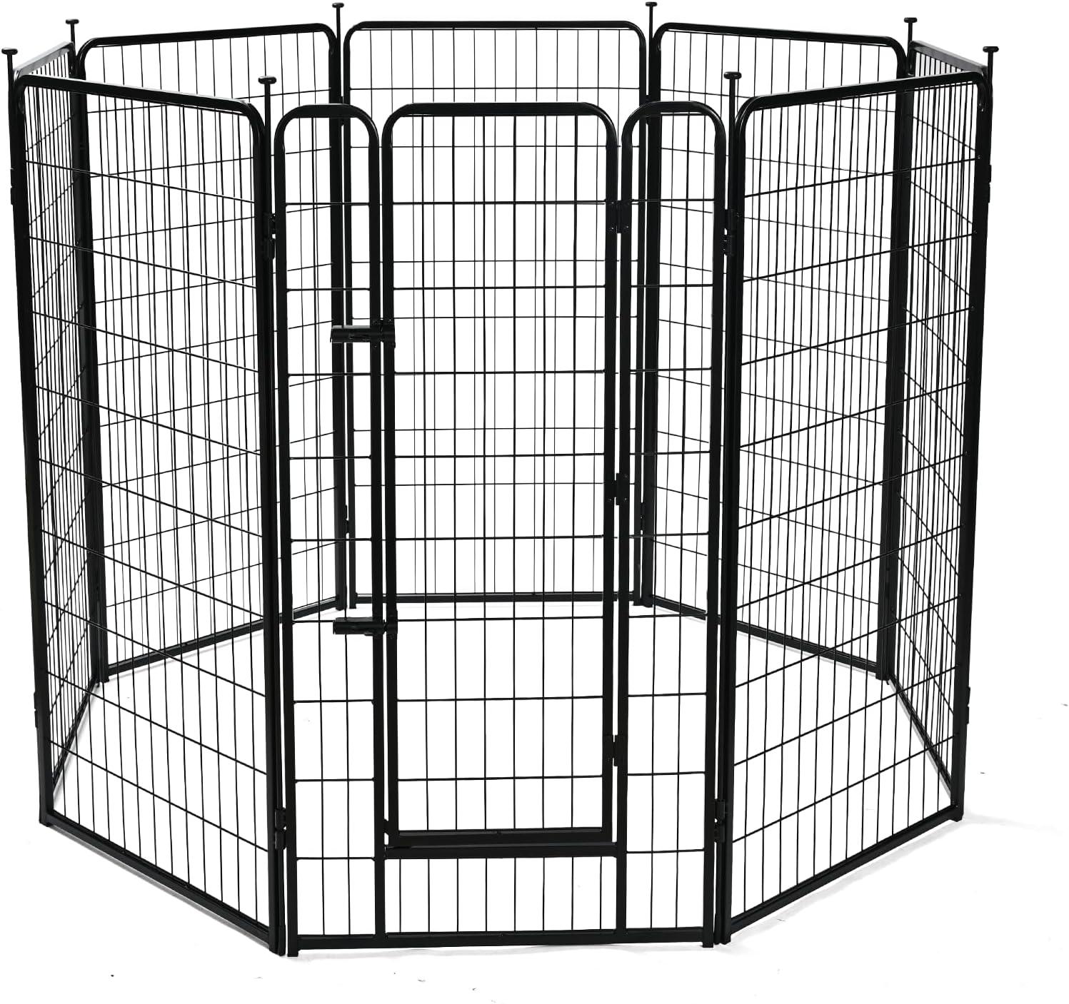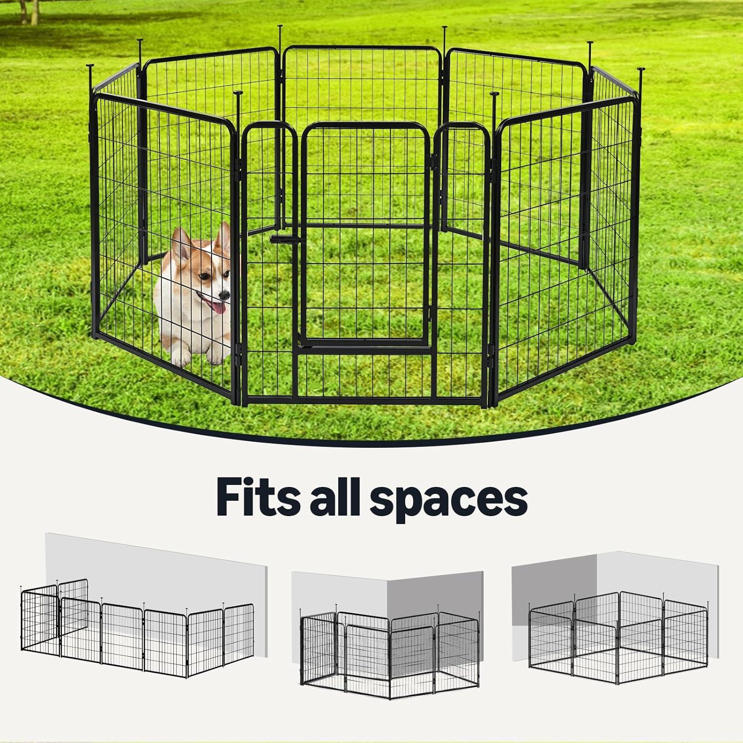 FLEXIBLE SHAPE OPTIONS: This pet fence connects with metal rods and can be arranged into square, rectangular, or octagon shapes. Easily expand the puppy playpen by combining multiple sets for a custom fit